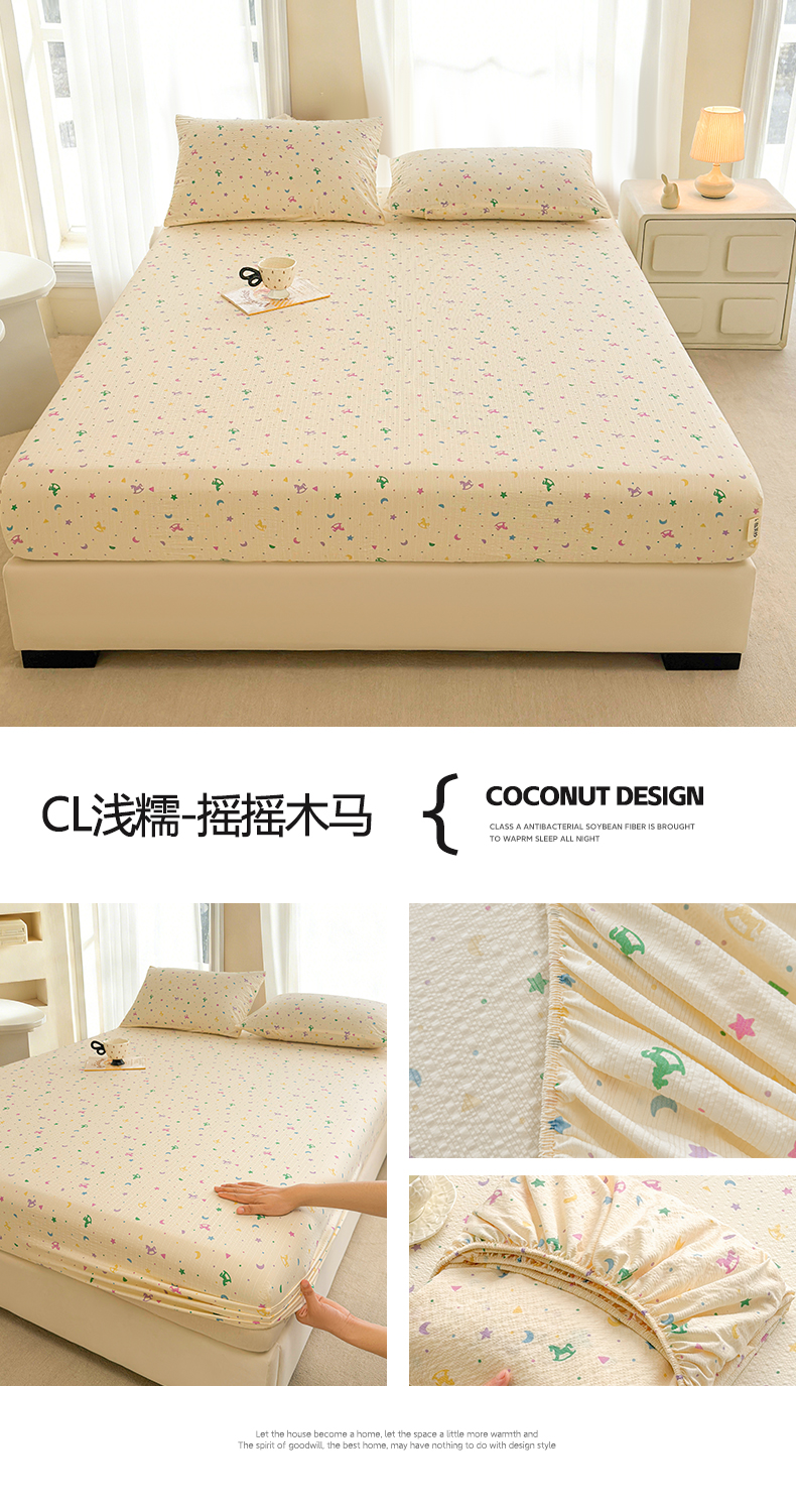 贝扬思家纺 2026新款高克重泡芙纱印花款单床笠床笠单件-浅糯 CL浅糯-豹纹新新