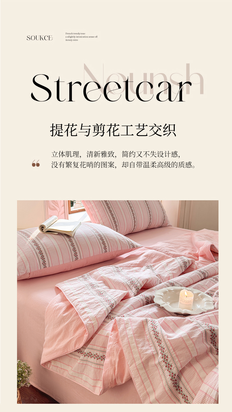 当前位置: 91家纺网 > 商品网购 > 床品套件 > 四件套 > 夏被四件套 > 木楌家居 2026新款全棉提花剪花夏被四件套 黎漾