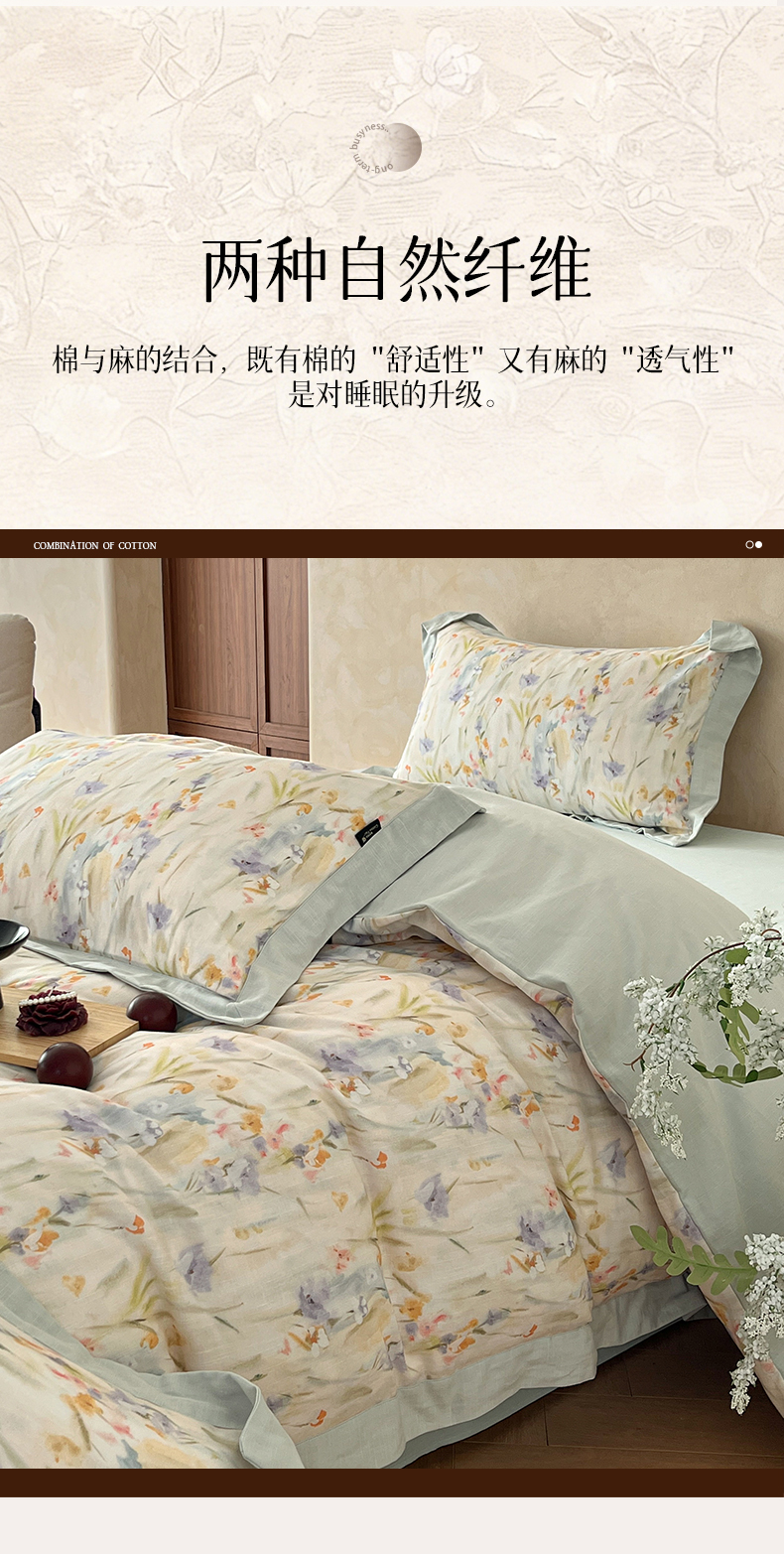 被面材质: 棉麻:棉+亚麻(混纺)