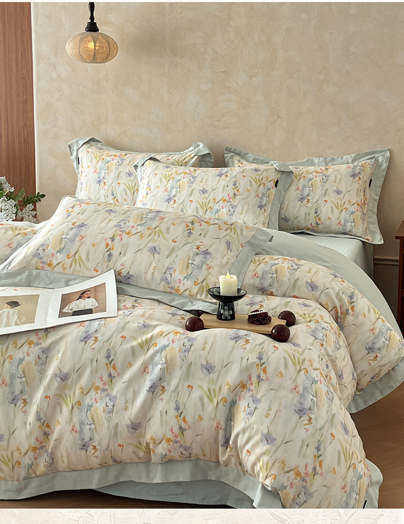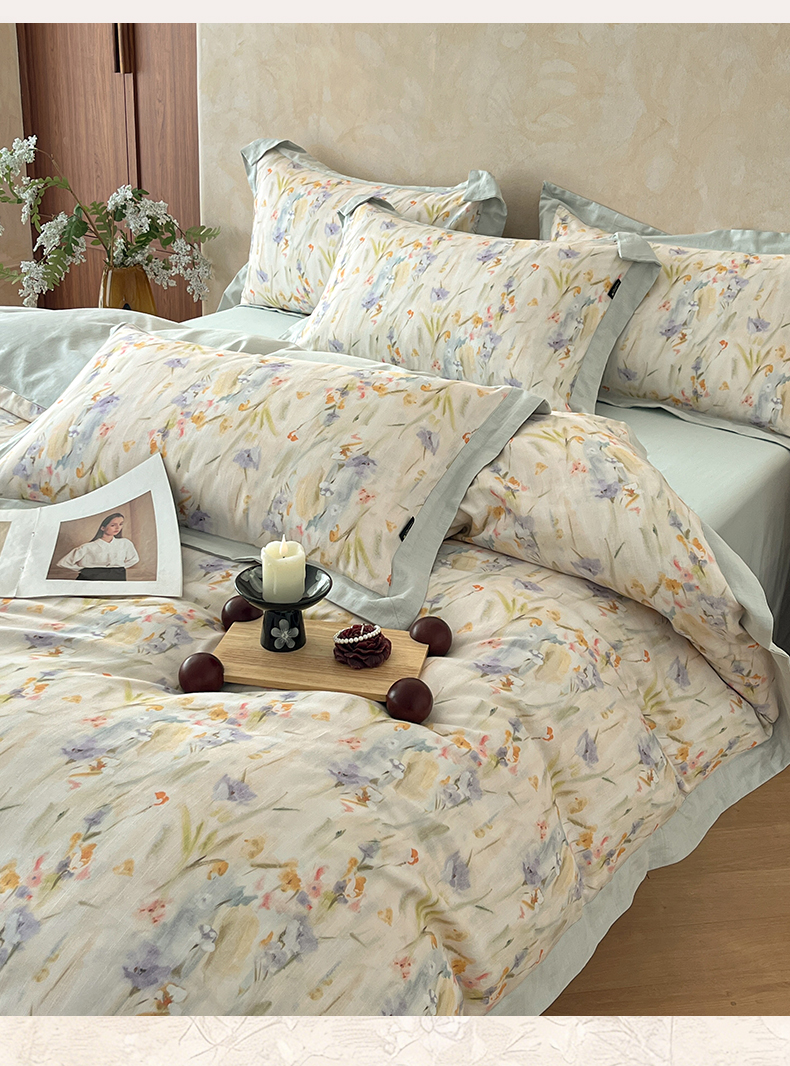 (总)金昱纺 2026新款拼角工艺款数码印花棉麻四件套