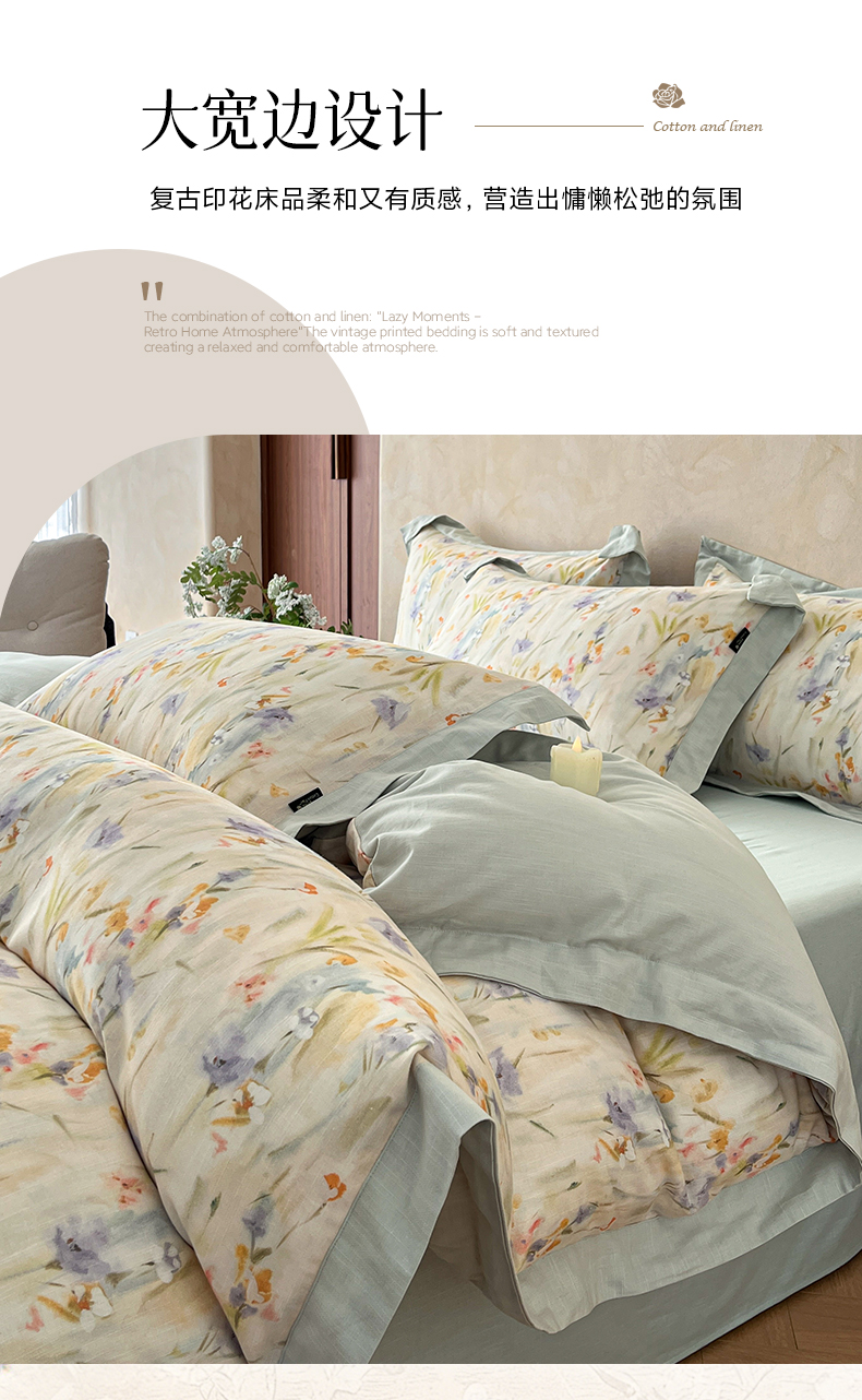 商品名称:(总)金昱纺 2026新款拼角工艺款数码印花棉麻四件套