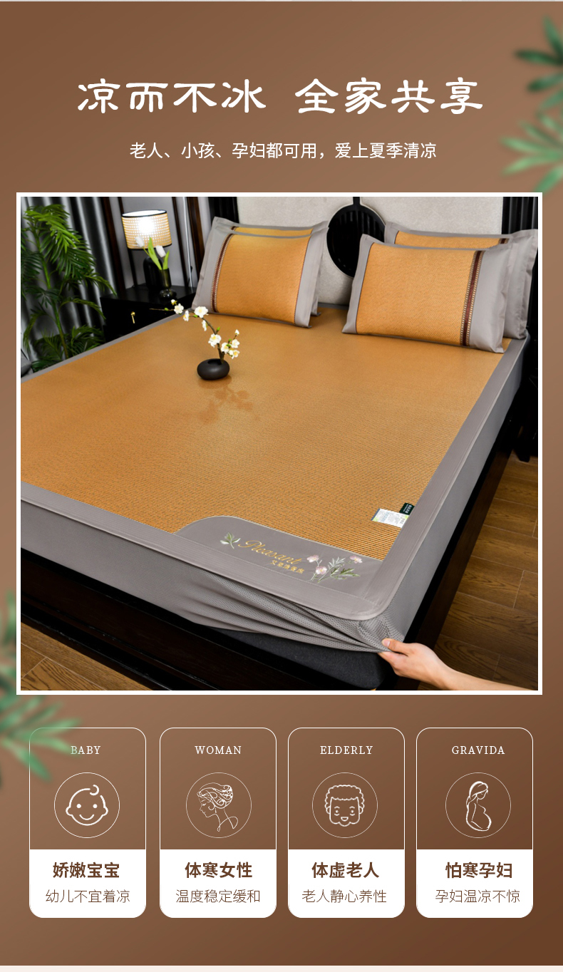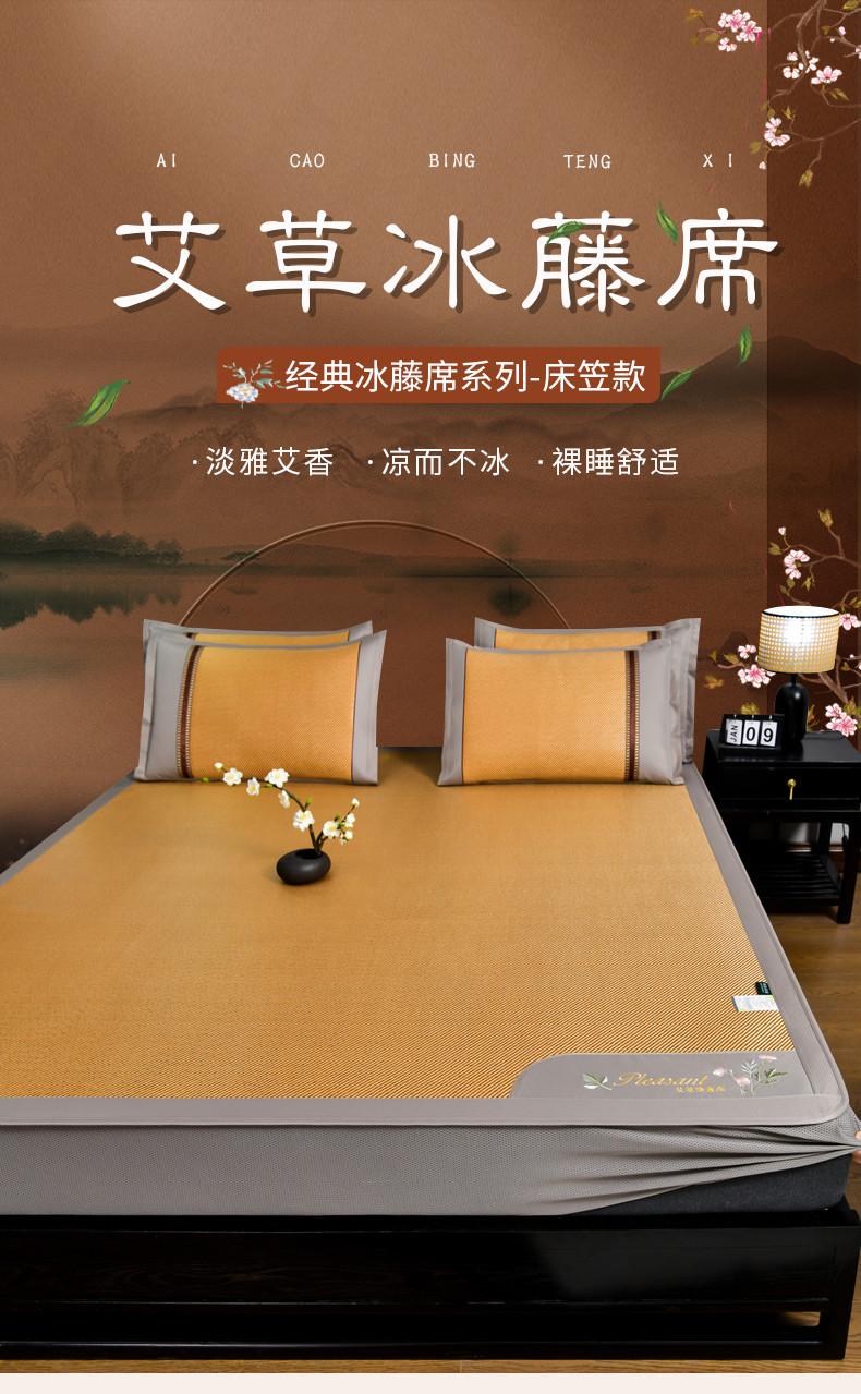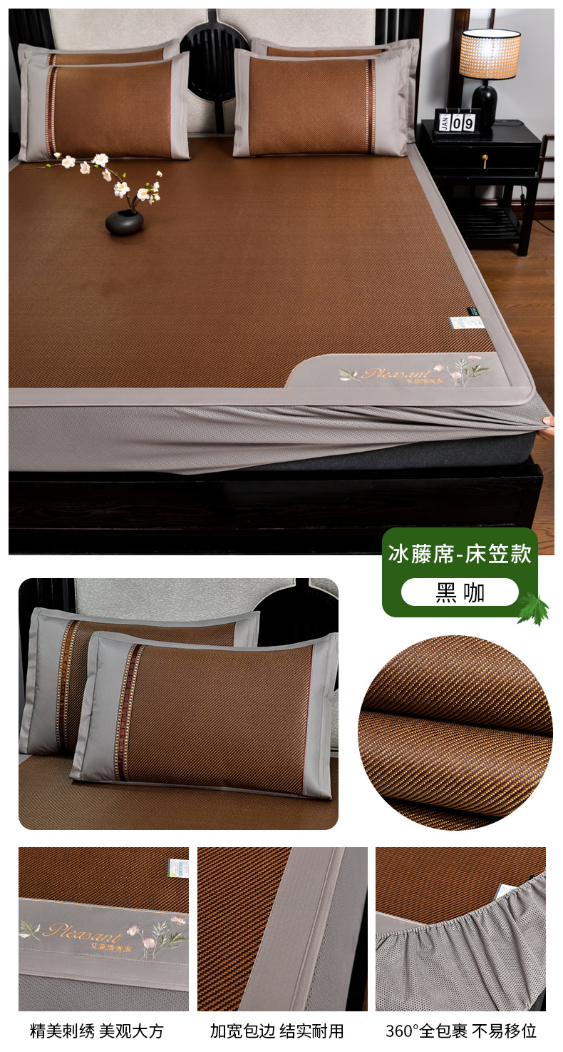 当前位置: 91家纺网 > 商品网购 > 床上用品 > 凉席 > 凉席套件 > 小牛席业 2026新款艾草清香冰藤-双面席系列(床笠款) 艾草清香冰藤席系列(床笠款)-深咖
