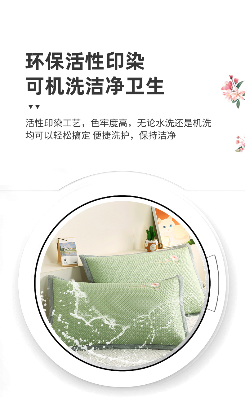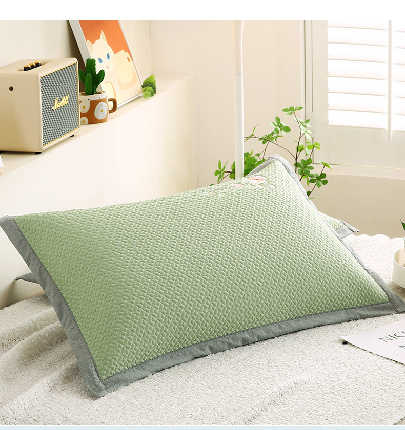 商品名称:小牛席业 2026新款鲜花刺绣冷感豆豆枕套单枕套枕套单件 绿色