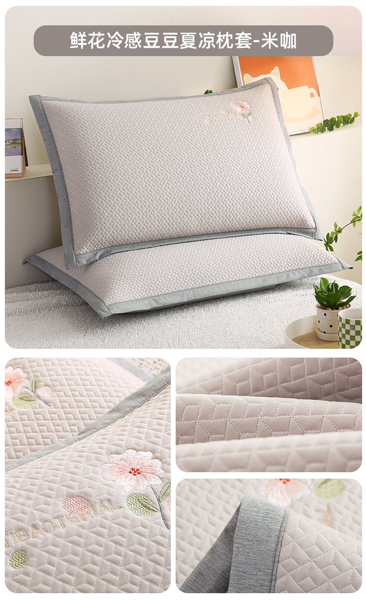 (总)小牛席业 2026新款鲜花刺绣凉感冰丝枕套单枕套枕套单件,鲜花凉感冰丝枕套-粉色,鲜花凉感冰丝枕套-灰色,鲜花凉感冰丝枕套-蓝色,鲜花凉感冰丝枕套-绿色,组合图 仅供参考