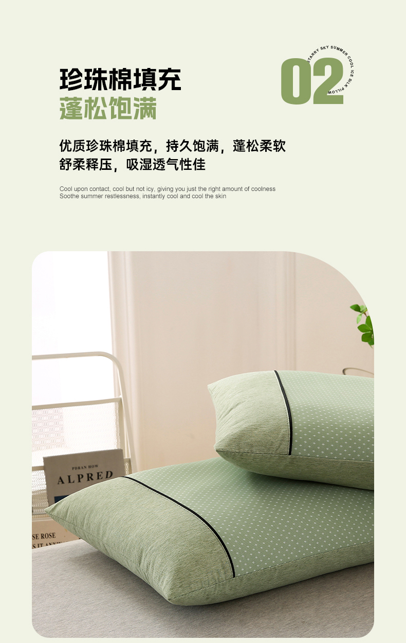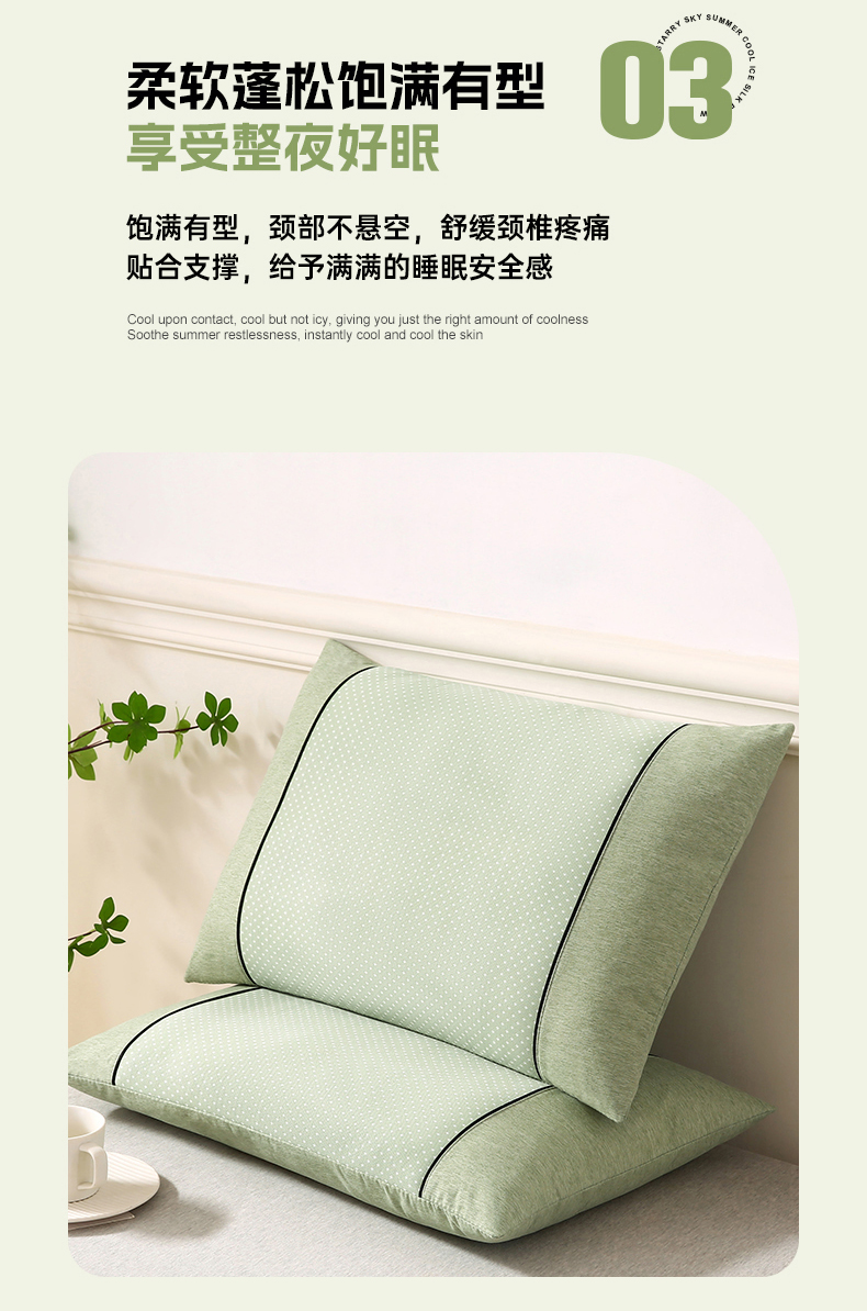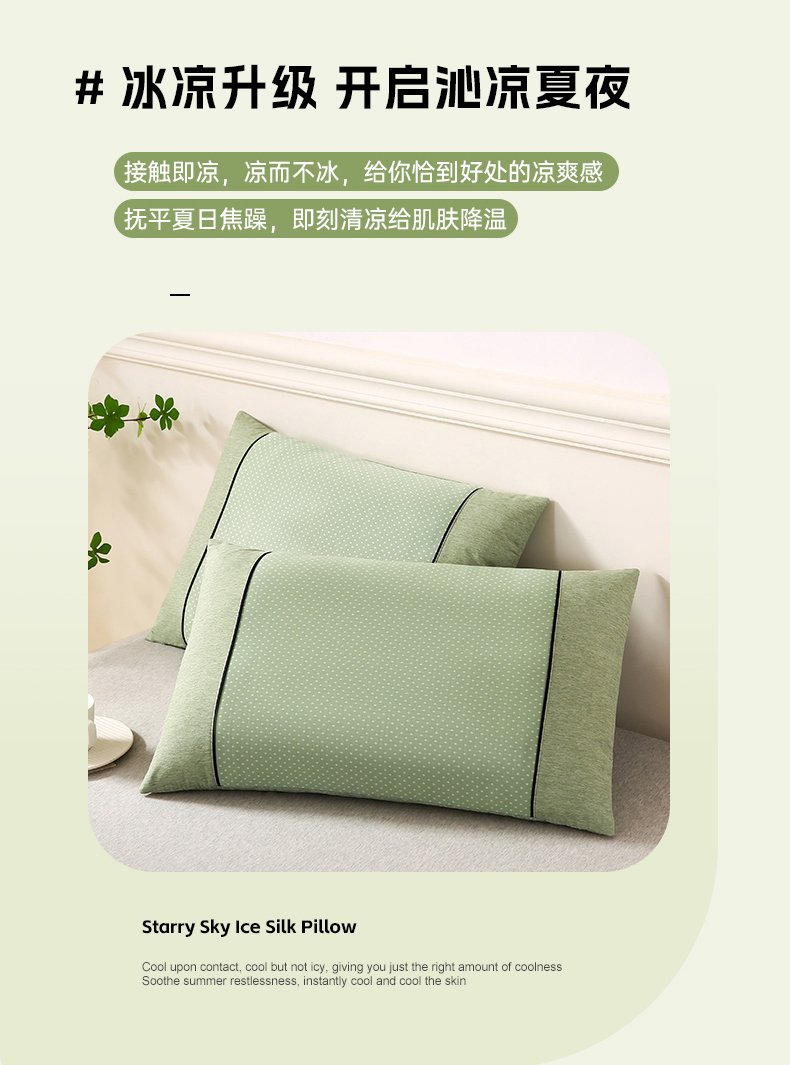 小牛席业 2026新款PE满天星凉感冰丝枕【夏凉枕】枕头枕芯 满天星冰丝夏凉枕-绿色