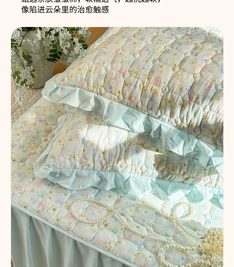 (总)禧缘家纺(原梦想家) 2026新款小清新皱皱纱木棉床裙式床笠印花单枕套,彩虹,蝶梦,花田,沐春,南瓜,泡芙,甜筒,童话,兔兔,雾迟,星星,月光