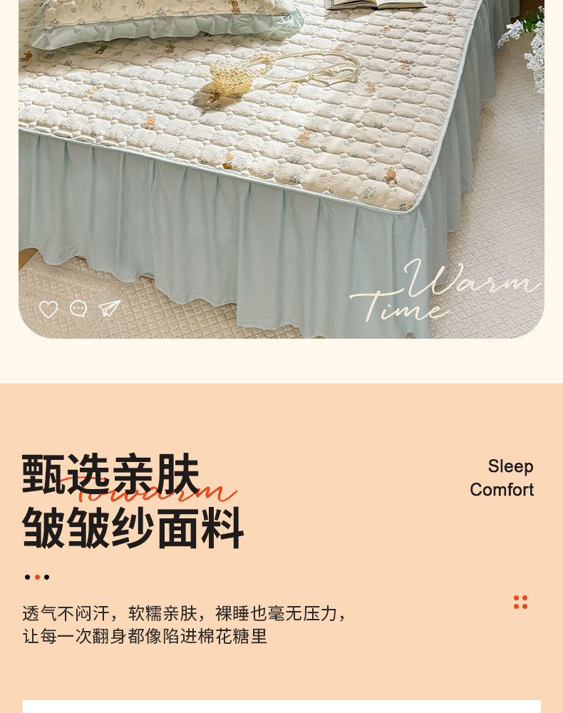 (总)禧缘家纺(原梦想家) 2026新款小清新皱皱纱木棉床裙式床笠印花单被套,彩虹,蝶梦,花田,沐春,南瓜,泡芙,甜筒,童话,兔兔,雾迟,星星,月光