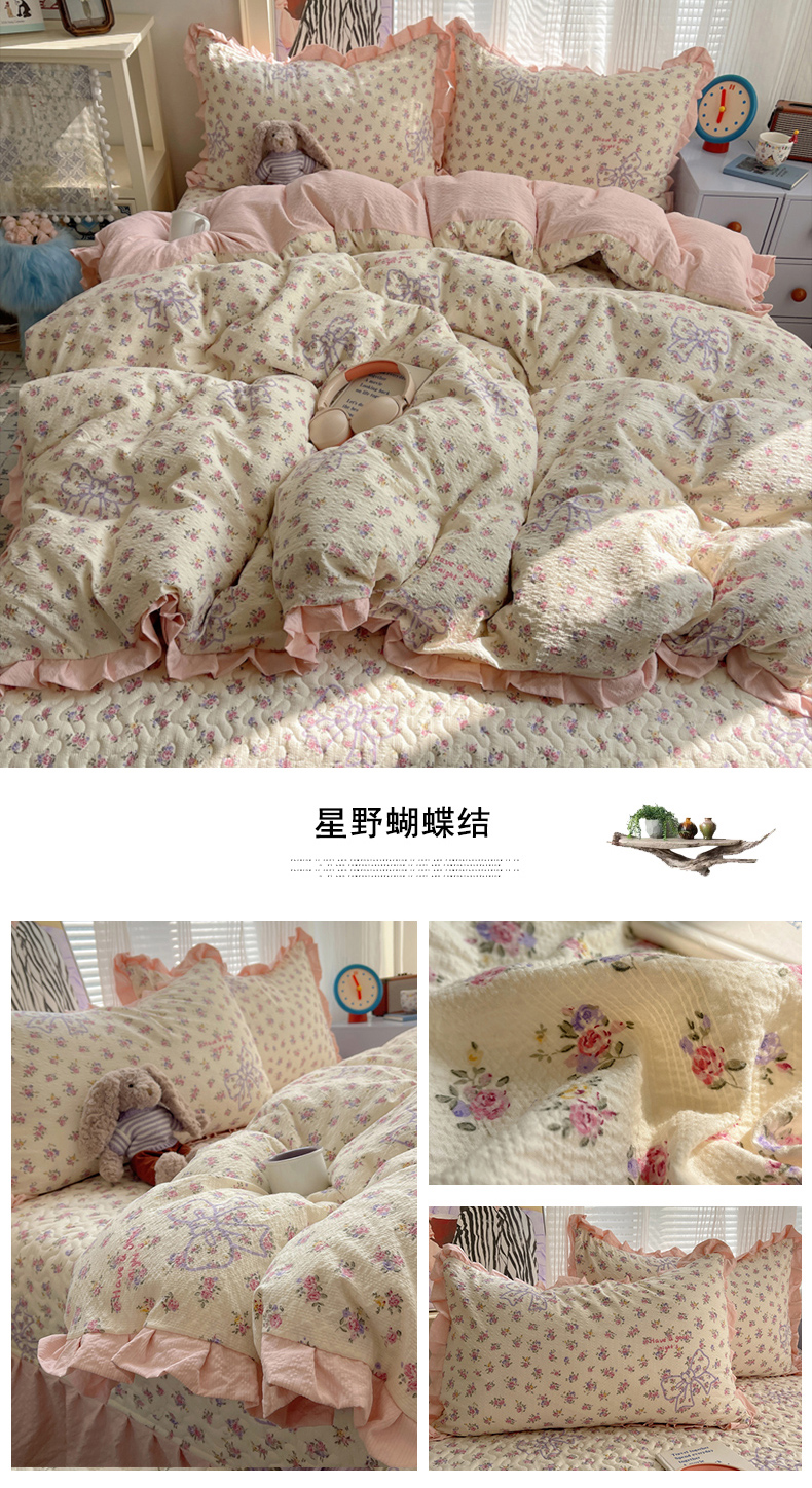 (总)迪梦姿家纺 2026新款高克重泡芙纱泡泡纱床盖款四件套系列,紫雾花蝶集,春日甜桃心米,纯宅熊,躲猫猫,花野兔眠,灰樱桃,旧街星星,猫咪集粉,莓系花伐,描线小猫咖,木马小花团,浅沙花影黄,浅沙花影蓝,田园兔,甜喵块块,甜心咖絮,甜心木马卷,兔仔花田,小兔裙边,星野蝴蝶结,悦悦小兔,只闻花香