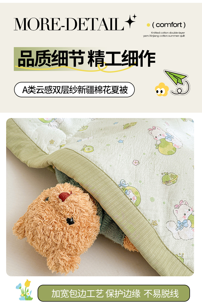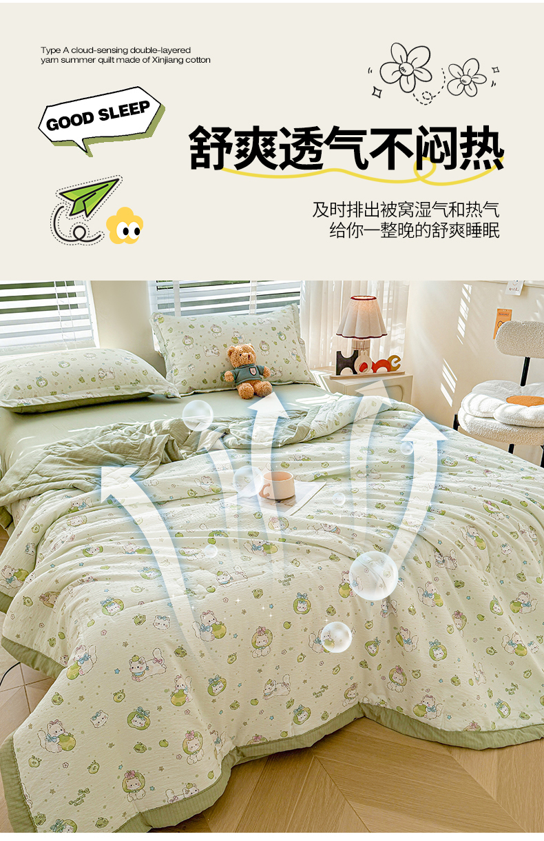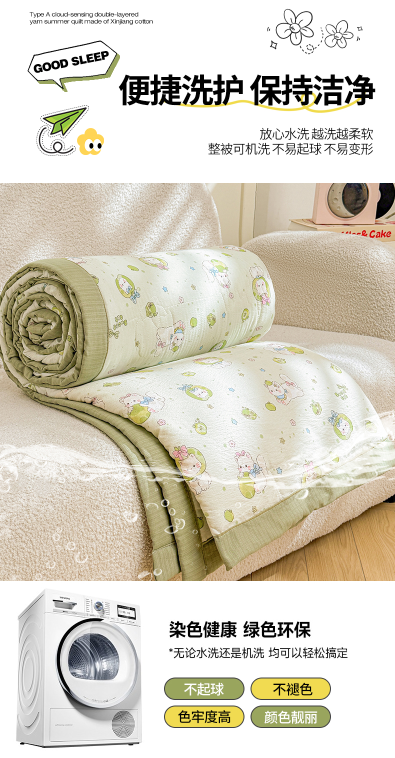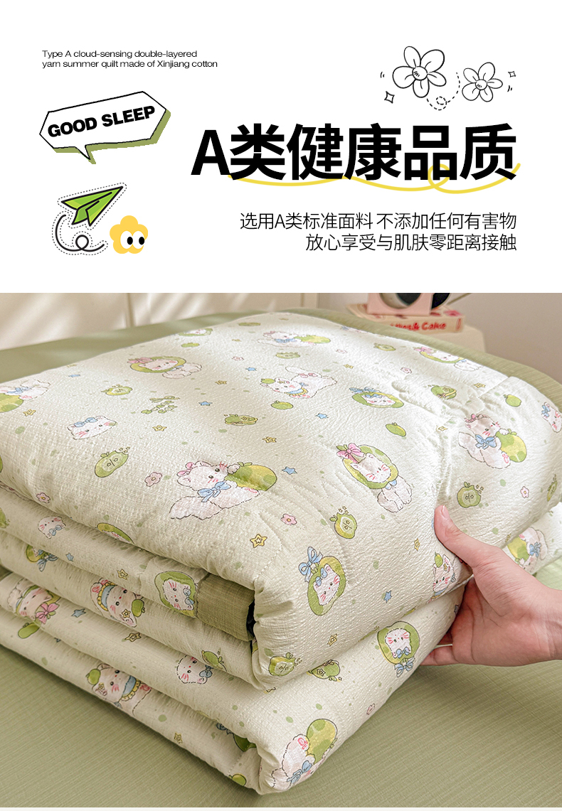 商品名称:2026新款A类新疆棉花夏凉被加宽包边水洗棉卡通印花吸湿透气棉花夏被空调被 云感青苹果