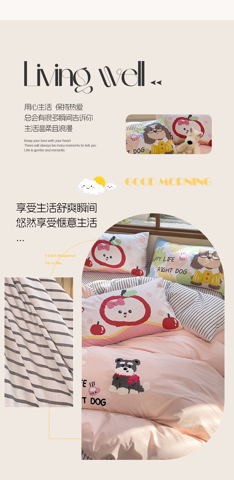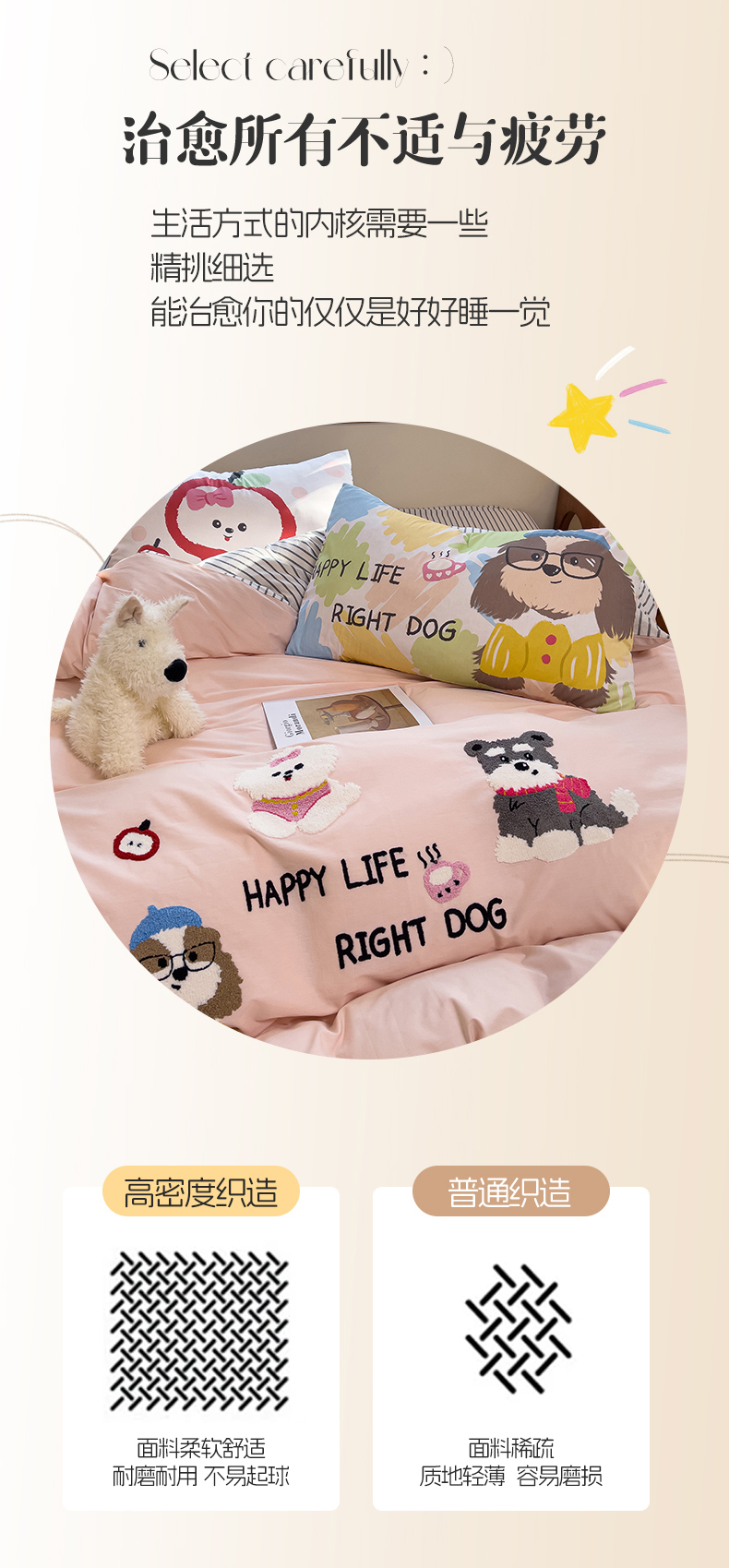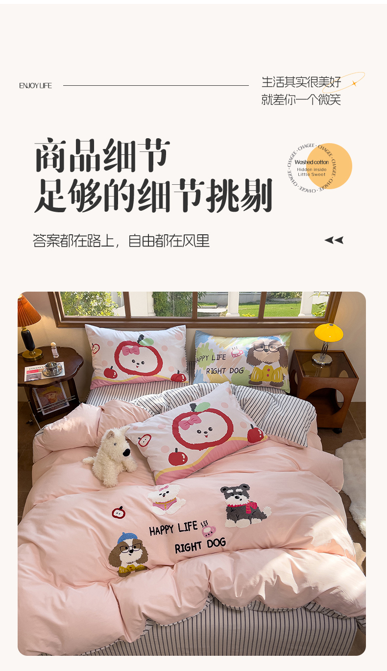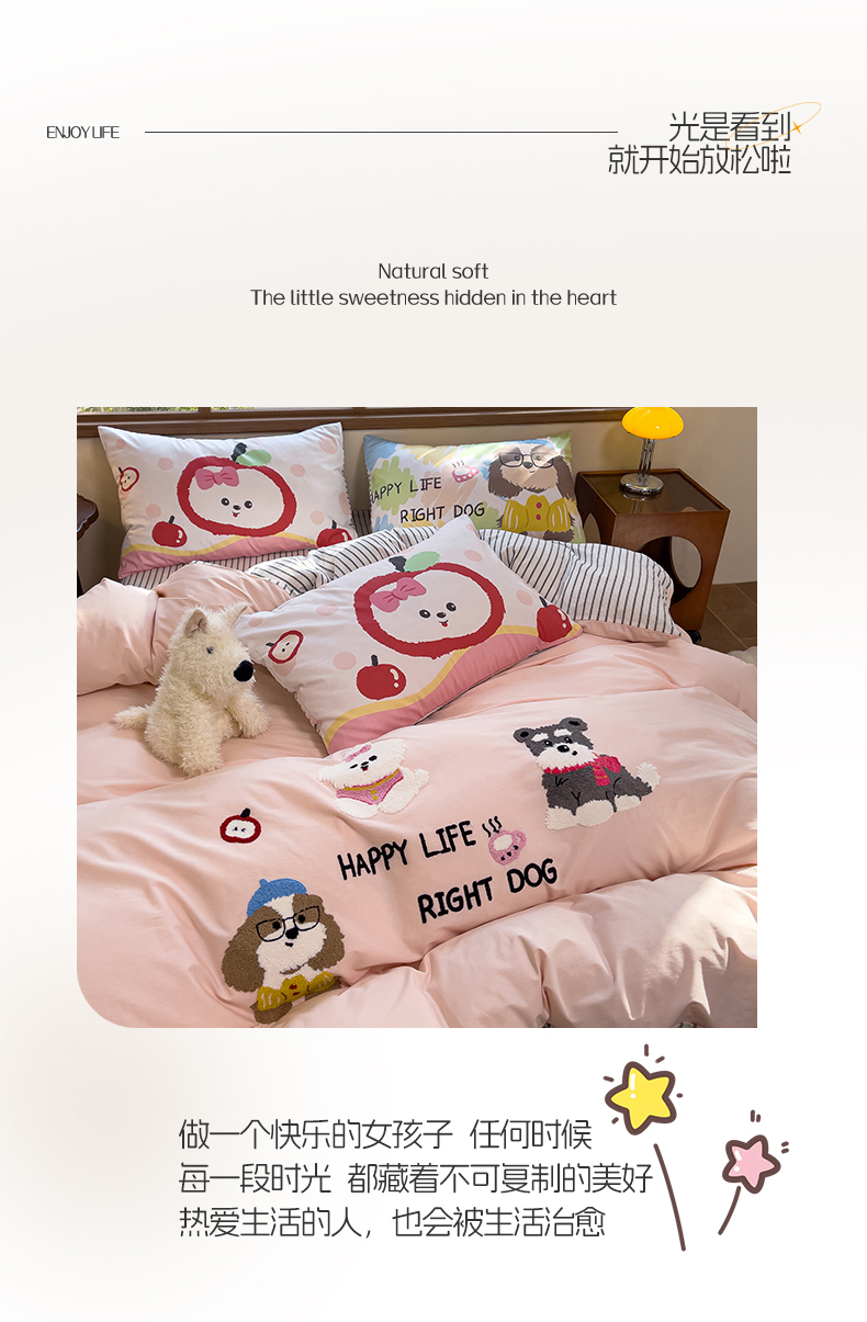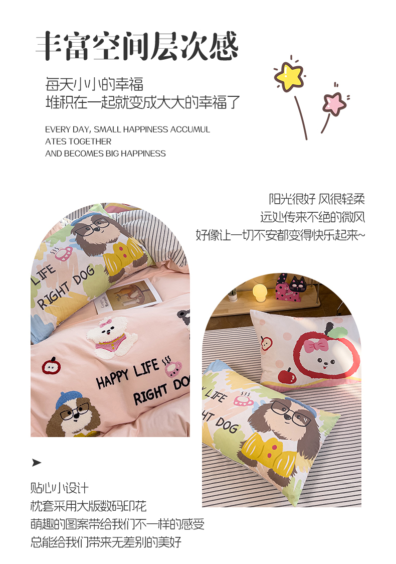 (总)炫拼家纺 2026春夏新款A类全棉纯棉40支水洗棉卡通贴布绣刺绣纯棉四件套-卡哇系列,卡哇一爵士,卡哇一可可,卡哇一甜心,卡哇一汪星,卡哇一悠咪