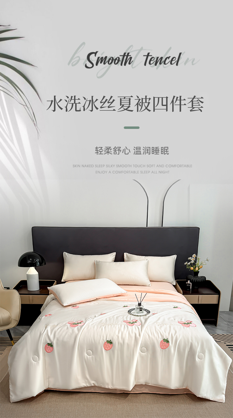当前位置: 91家纺网 > 商品网购 > 床品套件 > 四件套 > 夏被四件套 > 恒畅 2026新款满绣水洗冰丝夏被夏被四件套 粉莓轻夏-奶昔白粉