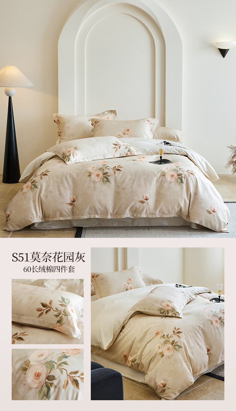 当前位置: 91家纺网 > 商品网购 > 床品套件 > 四件套 > 全棉普通四件套 > 梧桐树 2026新款全棉纯棉长绒棉数码印花系列四件套 S55森屿灰
