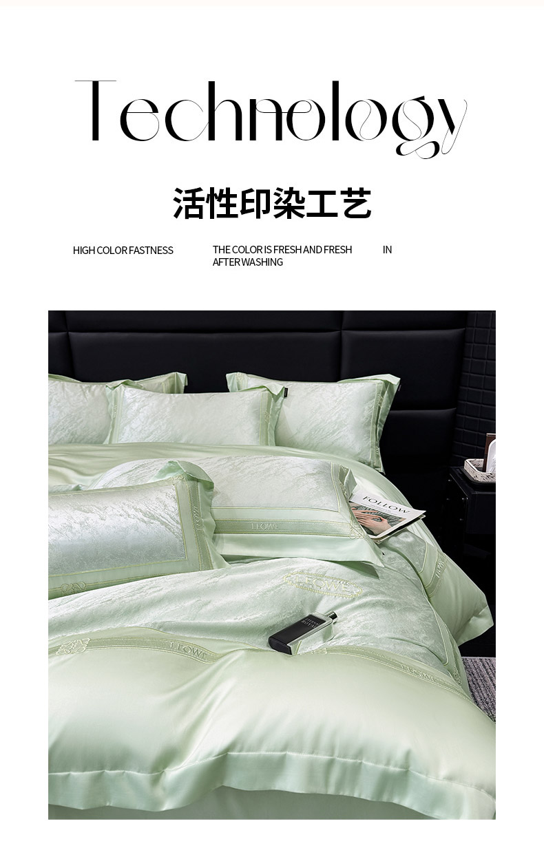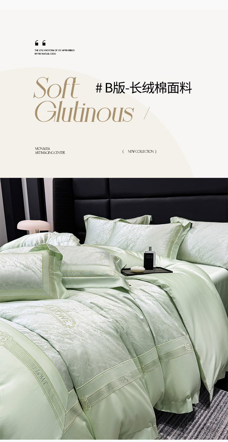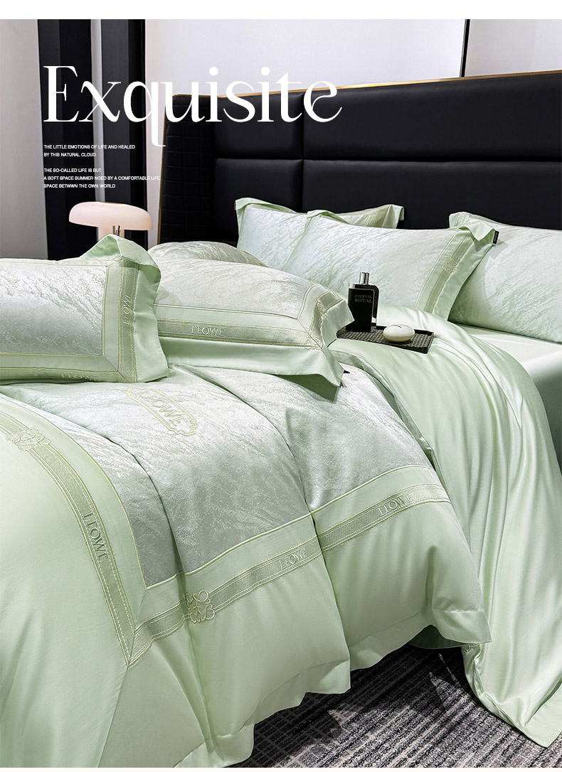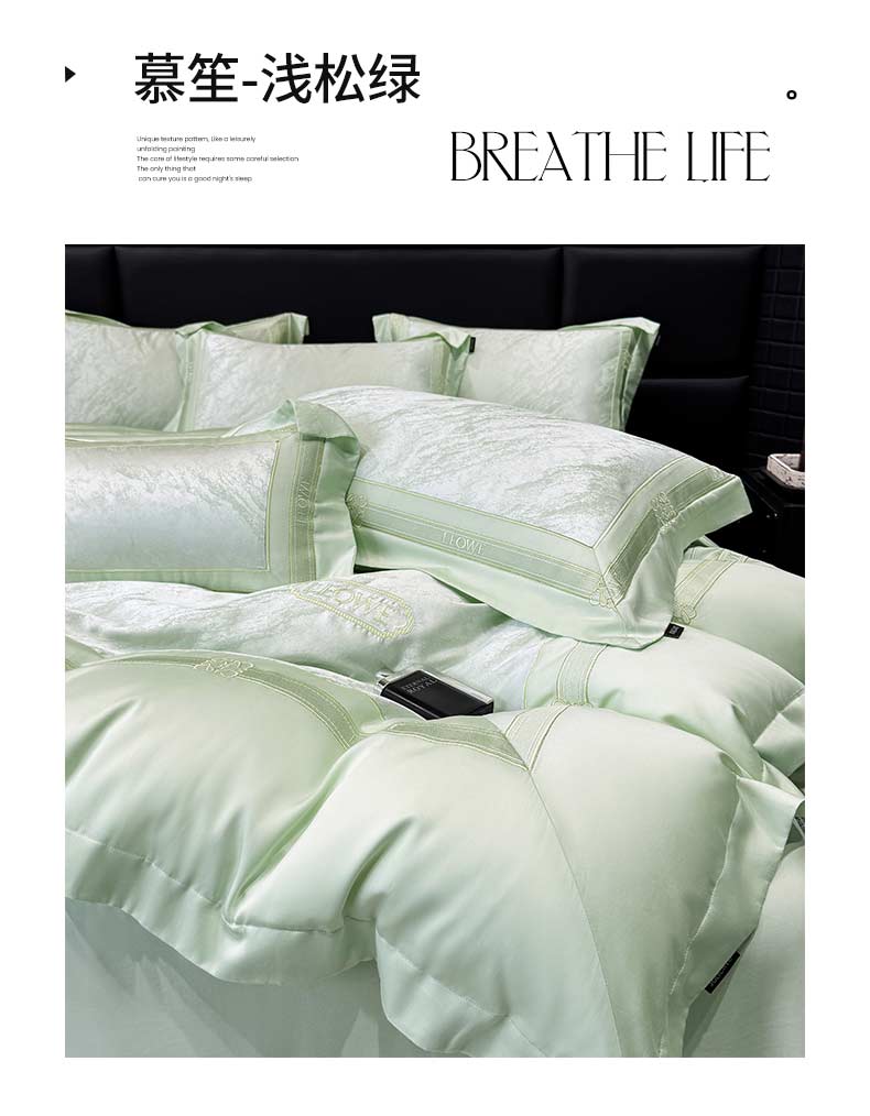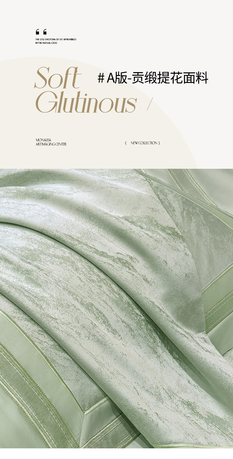 当前位置: 91家纺网 > 商品网购 > 床品套件 > 四件套 > 长绒棉四件套 > 乔利卡沃 2026春夏新品高端A类贡缎提花长绒棉纯棉四件套100全棉提花被套床单床笠高级感床上用品-慕笙 慕笙-浅松绿