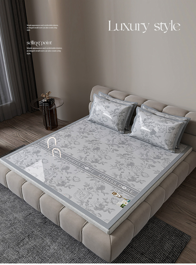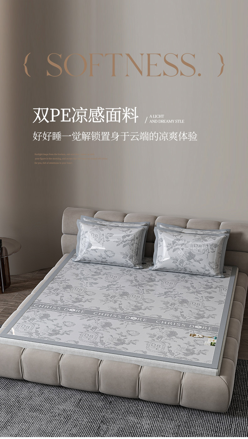 商品名称:小牛席业 2026春夏新款【建模风格】双PE高凉感-盛世蔷薇凉感冰丝席 盛世蔷薇-香槟