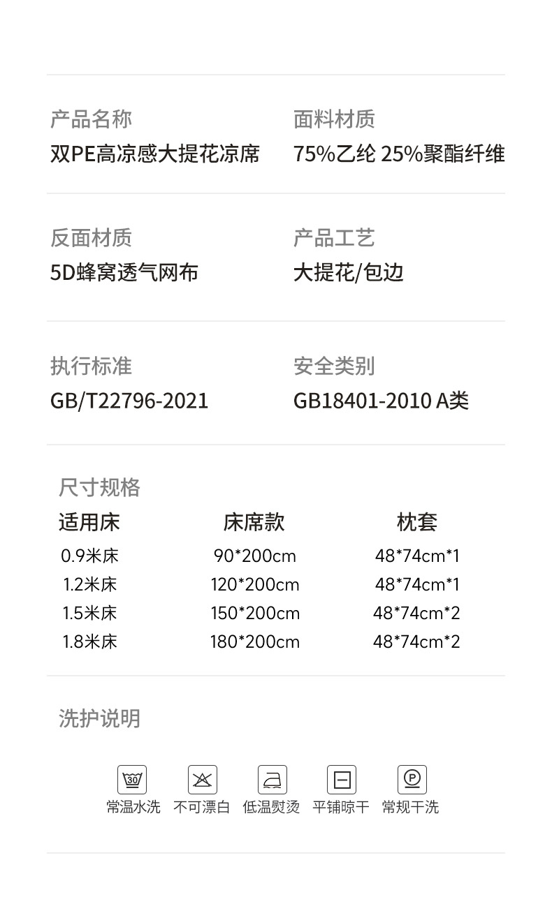 180x200cm凉席+枕套一对