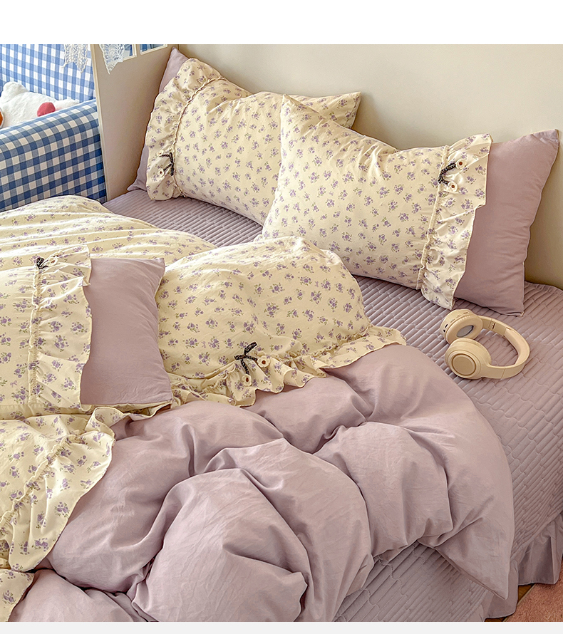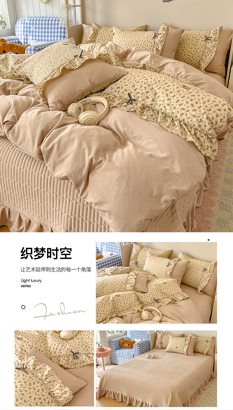 (总)美梦家纺 2026新款高克重全棉花边云感棉床盖四件套,希雅莉·米,雅格·粉,樱桃蜜·咖,尤丽叶·咖,紫藤碎花·咖,莓莓素语·粉,暖小象·兰,浅叶·米,希雅莉·灰