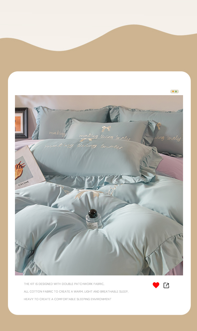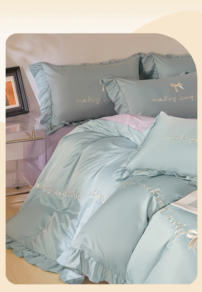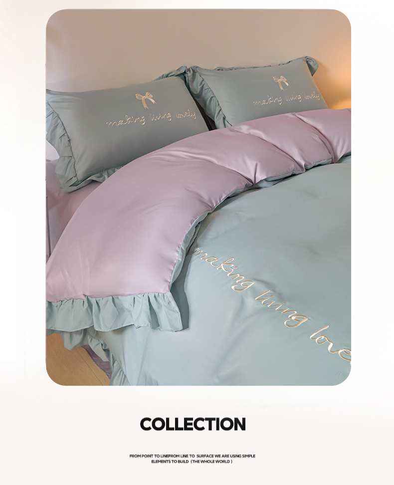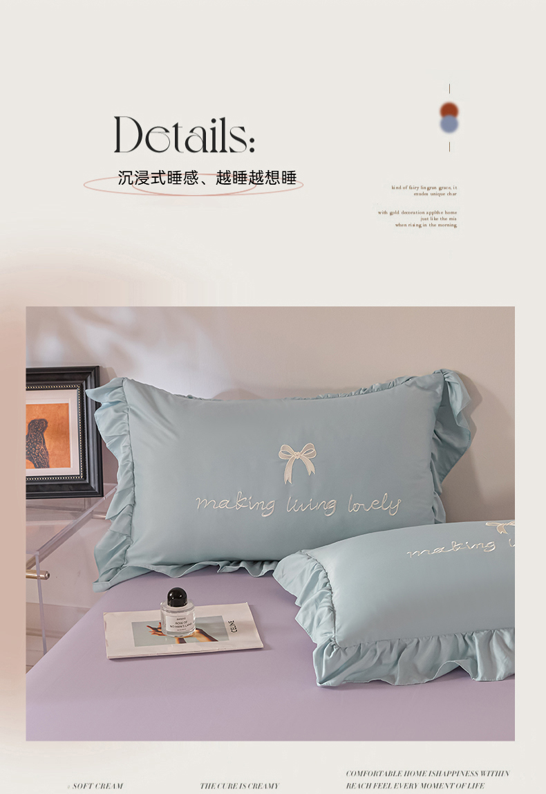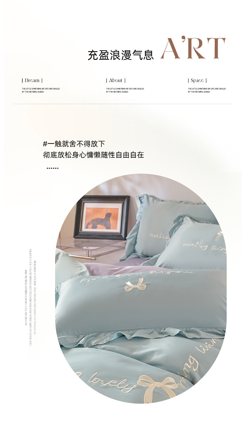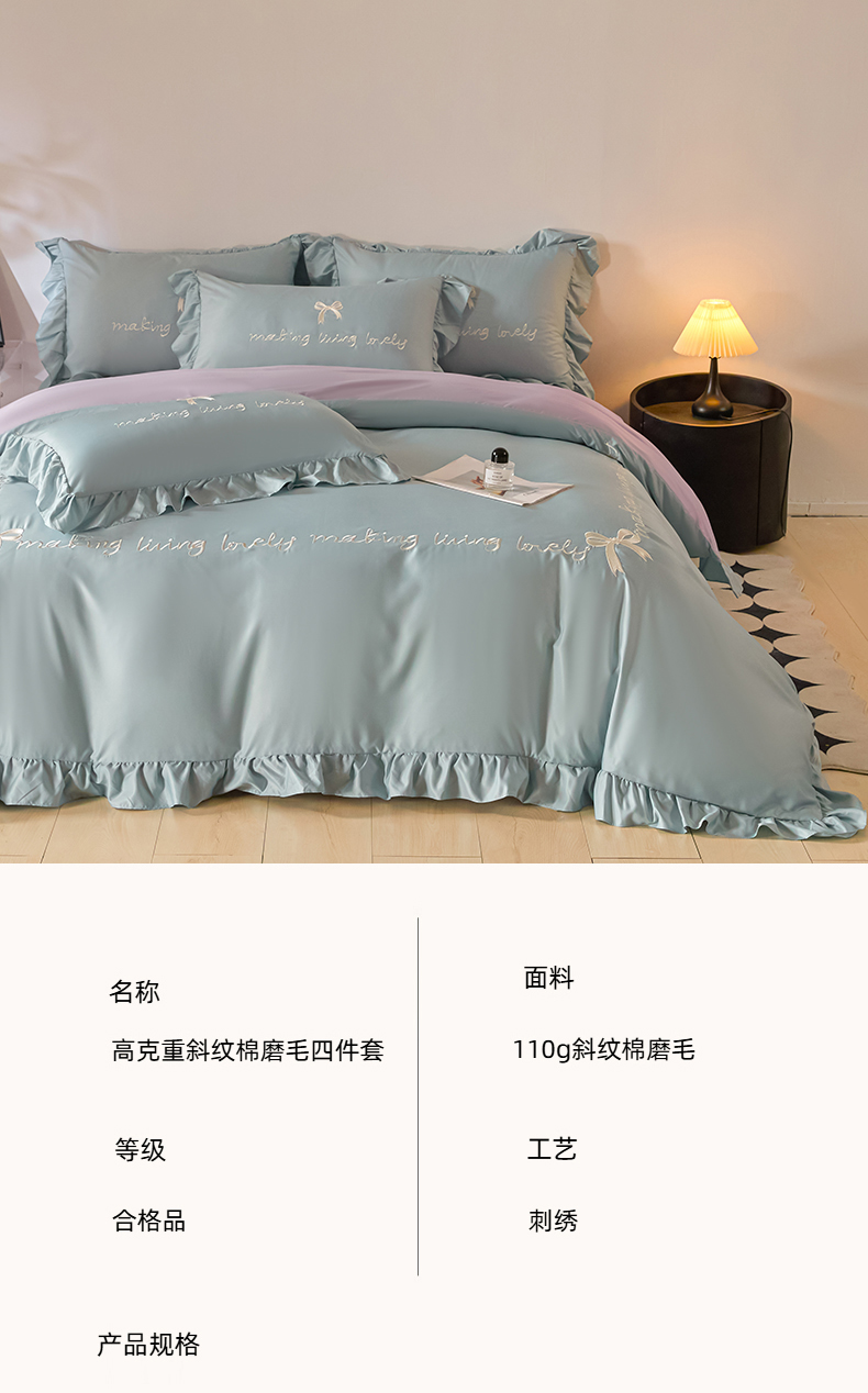 (总)千希家纺 2026新款130克斜纹公主风四件套-邂逅系列,邂逅-天蓝紫,邂逅-蜜桃灰,邂逅-奶白粉