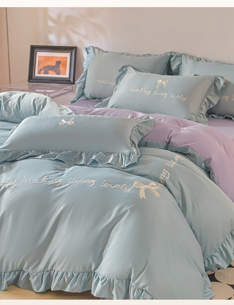 商品名称:千希家纺 2026新款130克斜纹公主风四件套-邂逅系列 邂逅-天蓝紫
