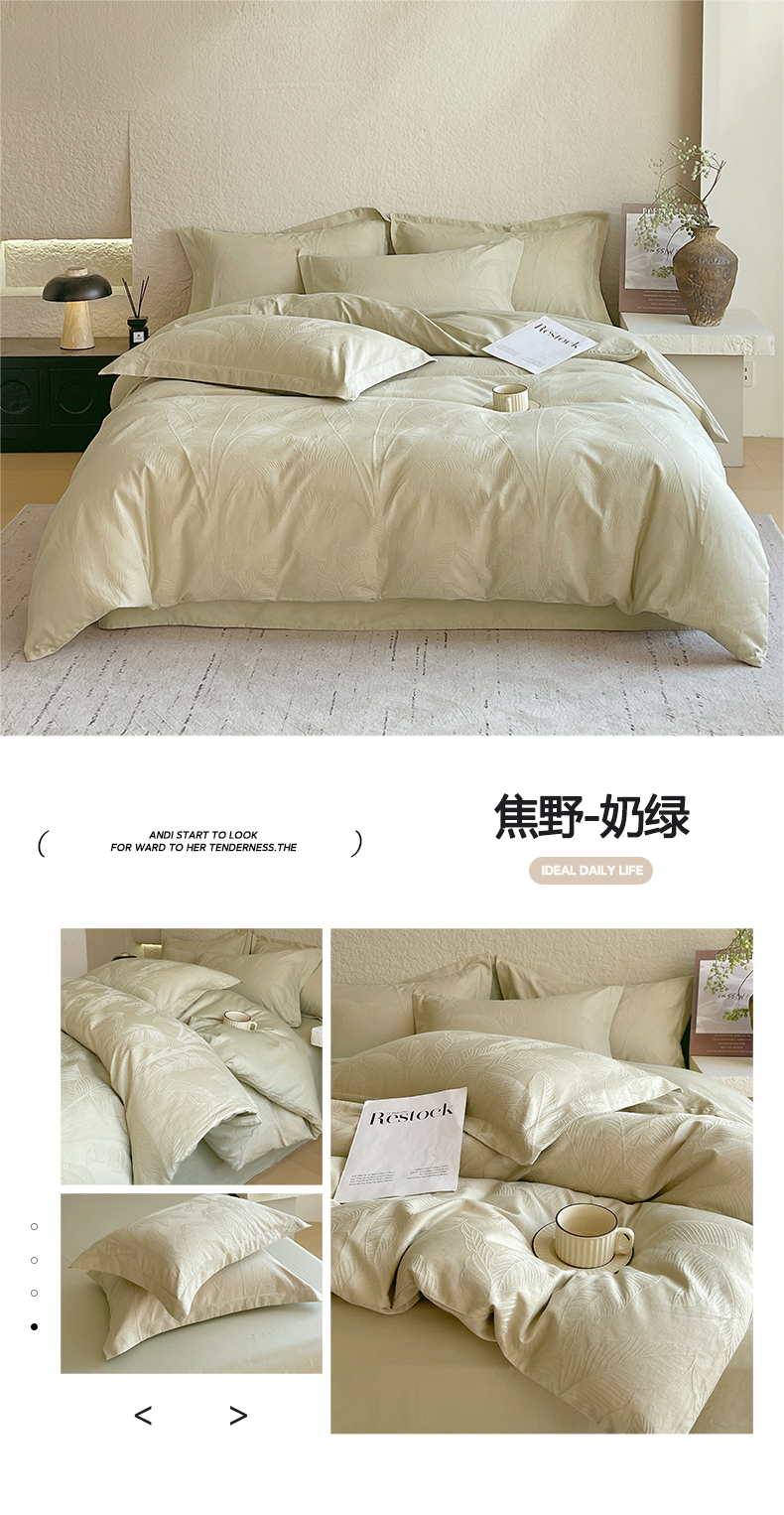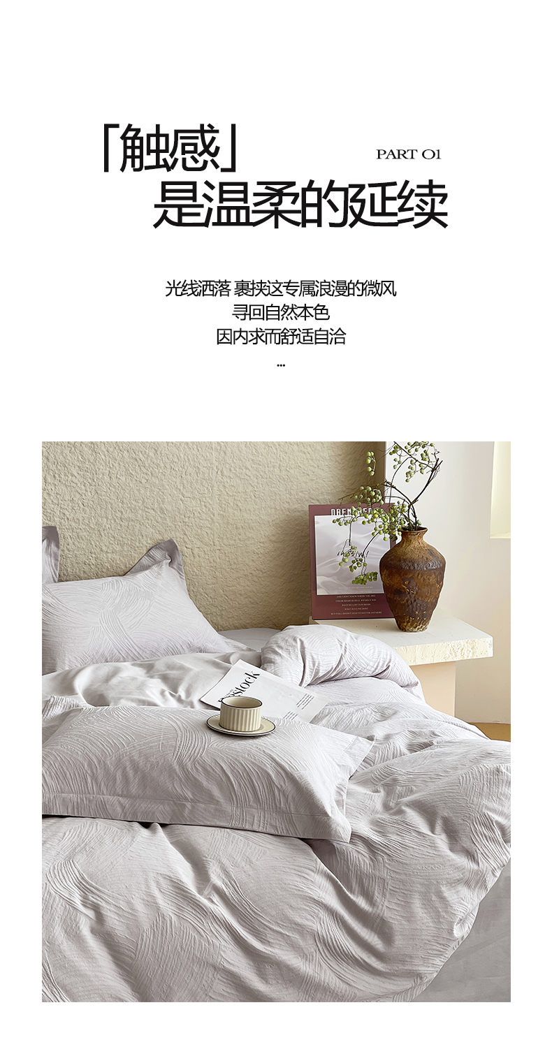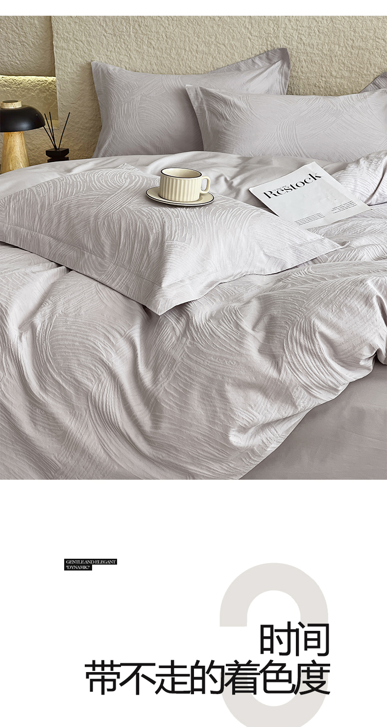 宜家坊 2026新款A类全棉纯棉亮面浮雕提花四件套 布兰卡-银灰