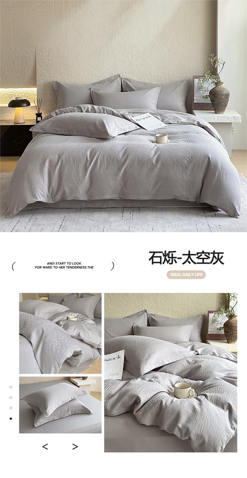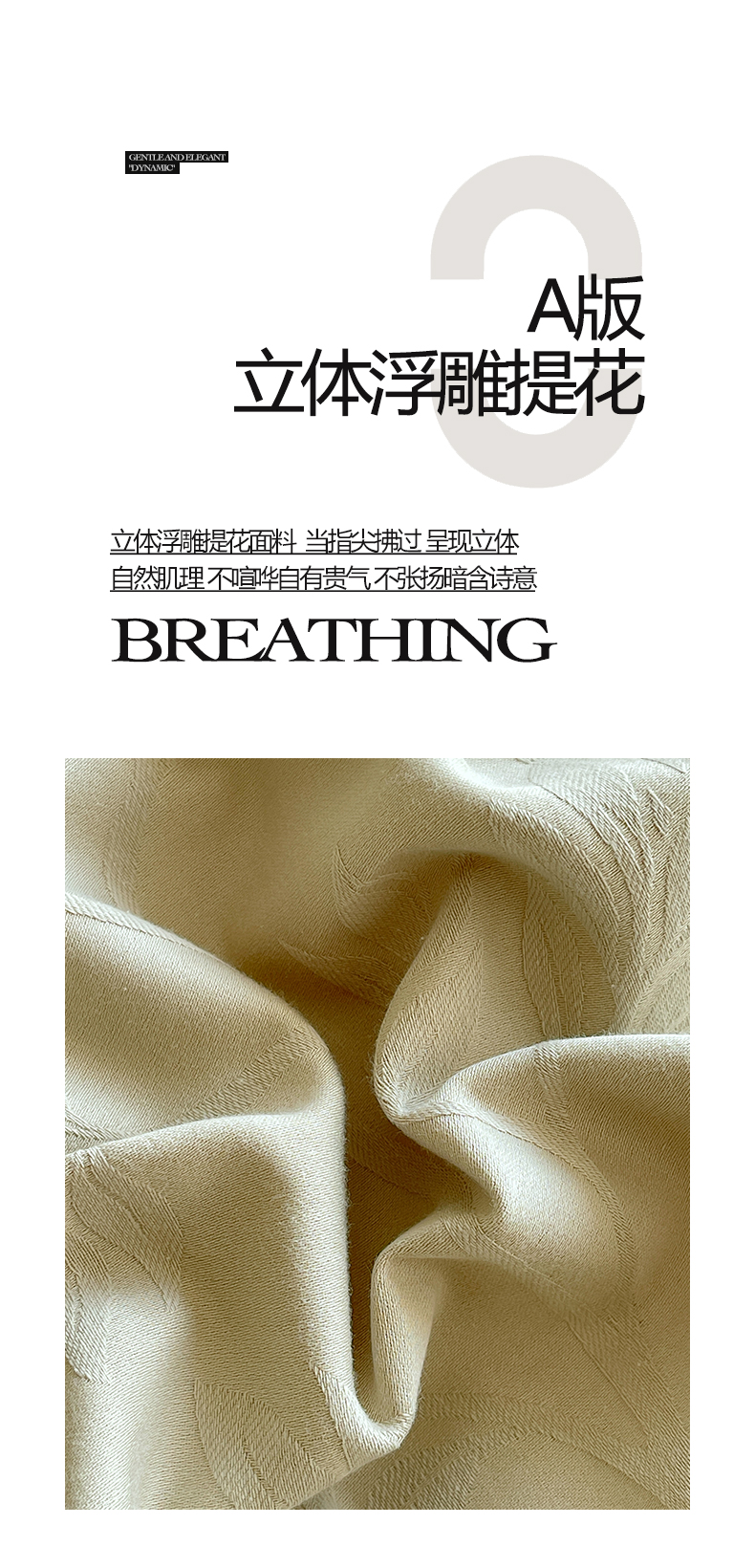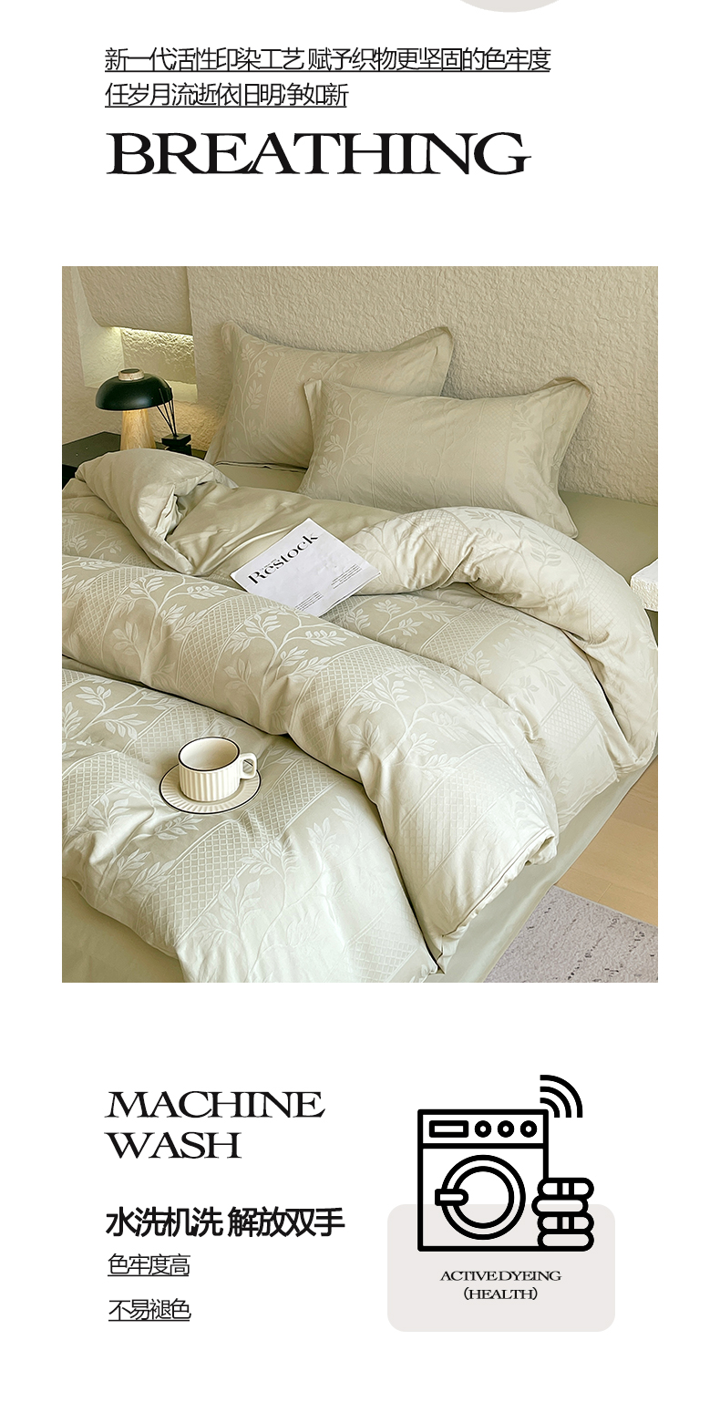 宜家坊 2026新款A类全棉纯棉亮面浮雕提花四件套 芊芊叶语-奶绿