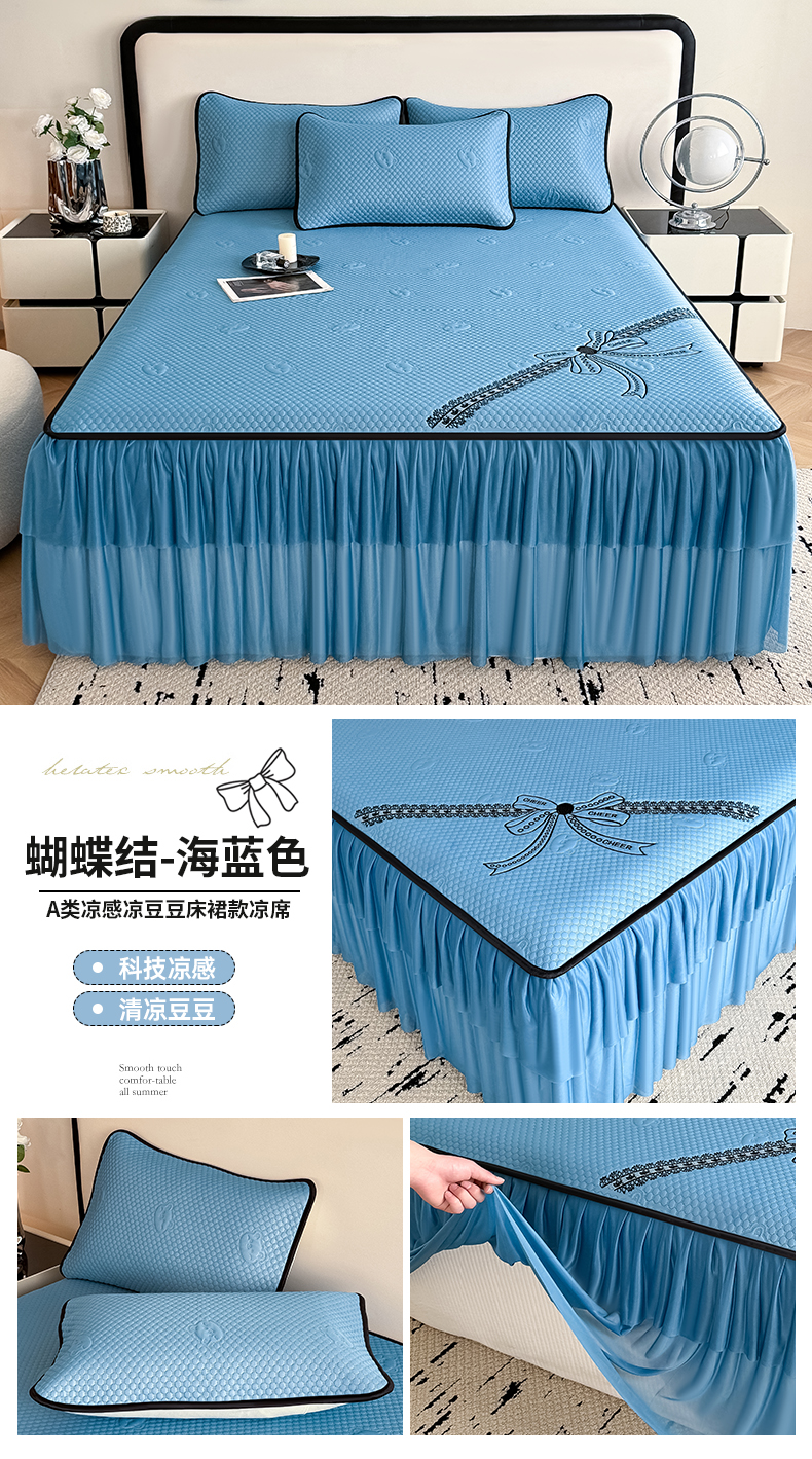 当前位置: 91家纺网 > 商品网购 > 床上用品 > 凉席 > 其他凉席 > 卡罗兰 2026新款豆豆冰丝凉席夏被复合三明治蝴蝶结床裙三件四件套 夏被-水绿色