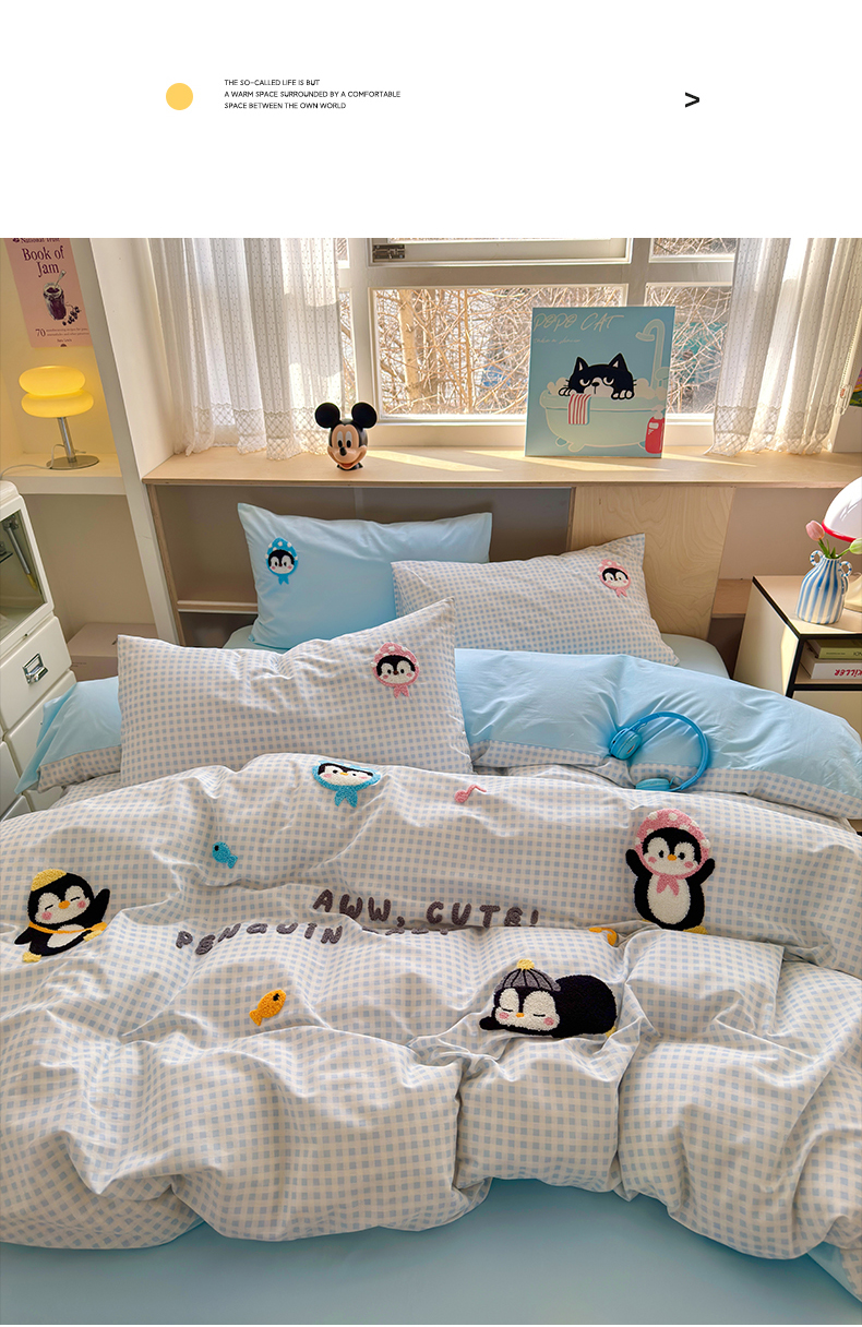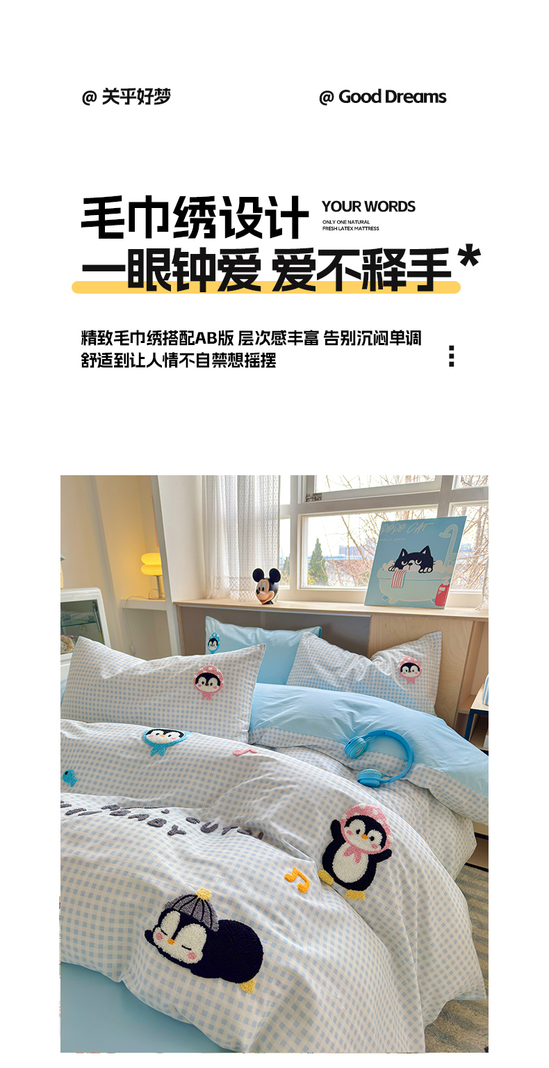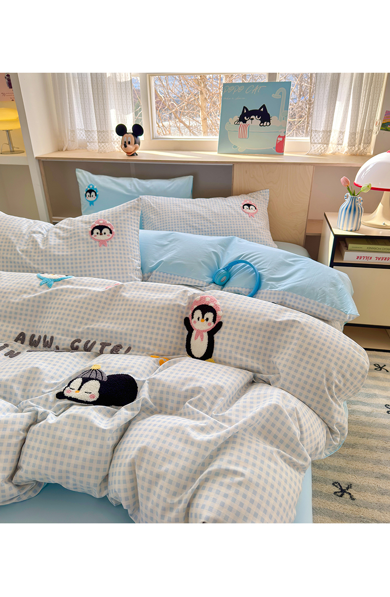 如意朵 2026新款全棉小清新绣花四件套第一批 企鹅抱抱
