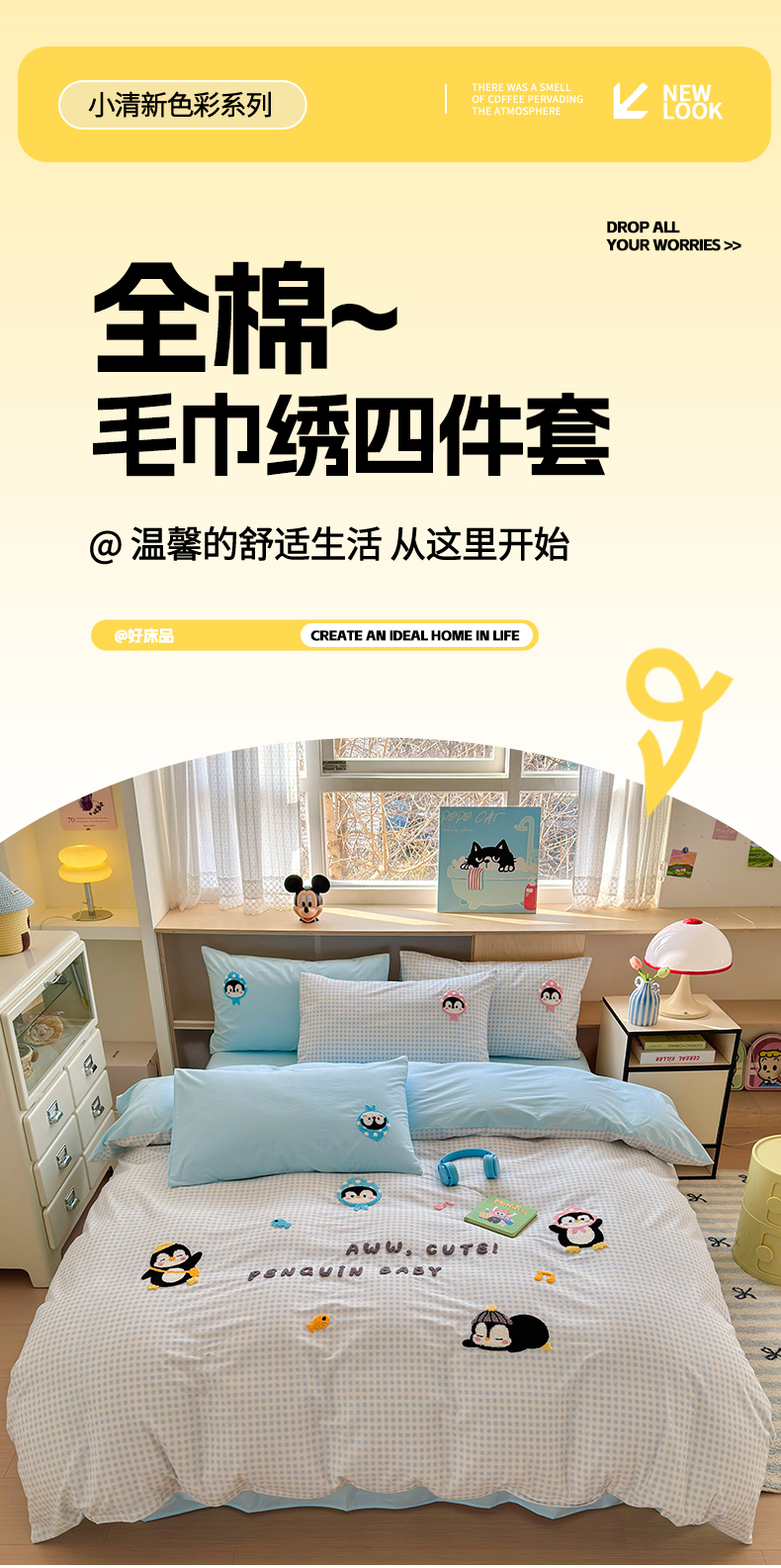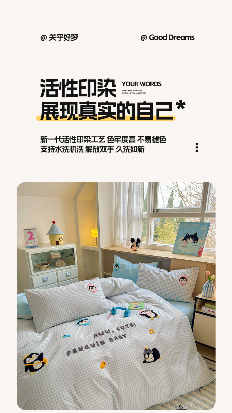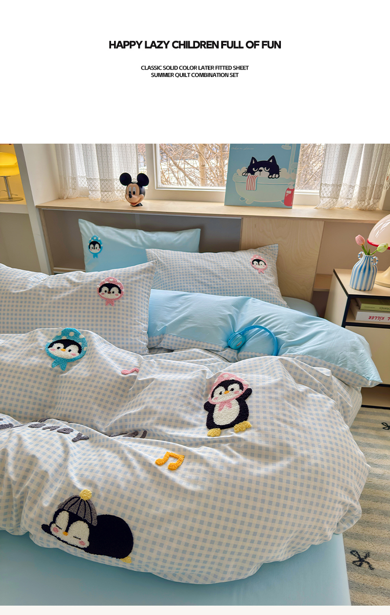 如意朵 2026新款全棉小清新绣花四件套第一批 企鹅抱抱