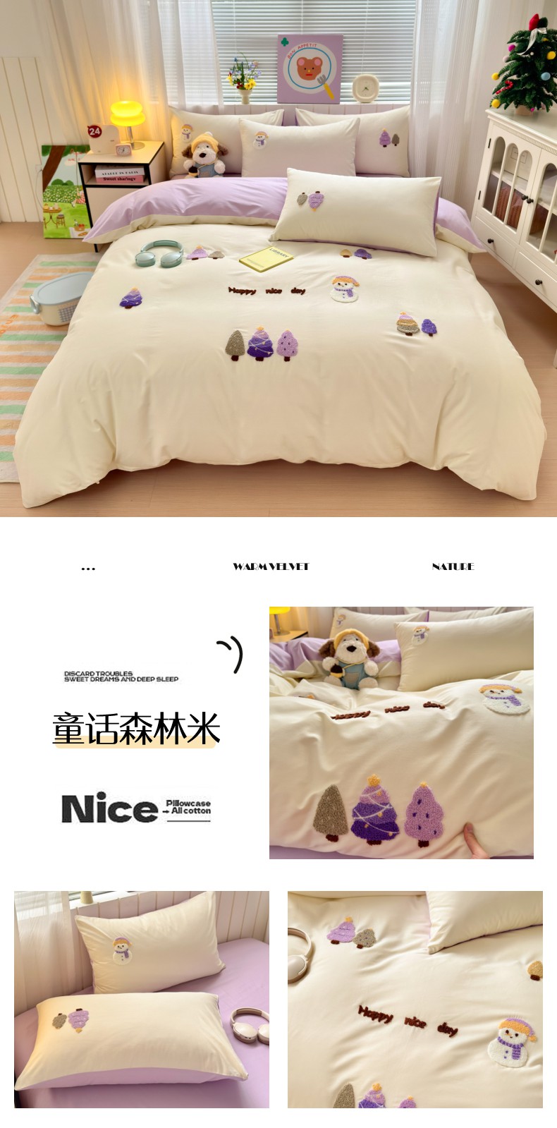 (总)如意朵 2026新款全棉加厚磨毛绣花四件套风格二(专版花型),梦幻森林紫,猫和树,甜心狗狗,狮来运转,圣诞心语,梦幻森林米,时尚猫咪,马到橙功,童话世界,追梦企鹅蓝,追梦企鹅米,快乐加马