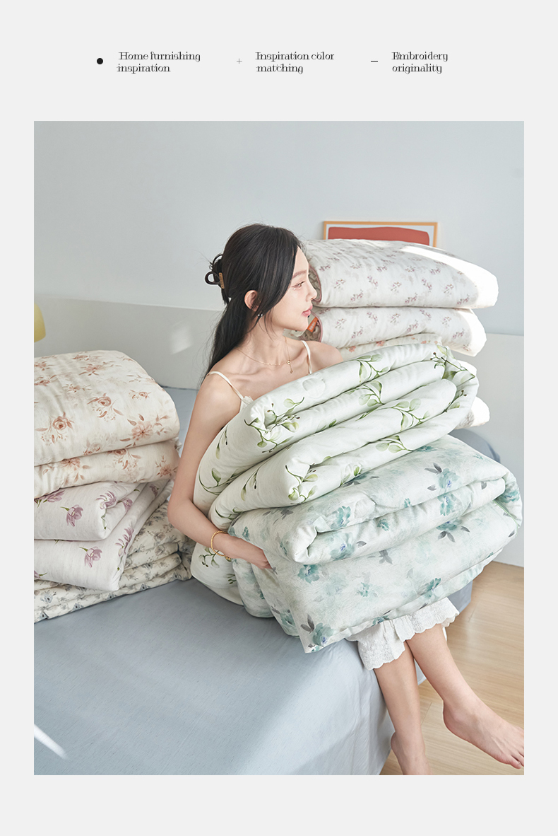 • 91家纺网 家纺一手货源 找家纺 恬思语家纺 2026新款天丝麻大豆印花夏被夏凉被空调被 花草韵