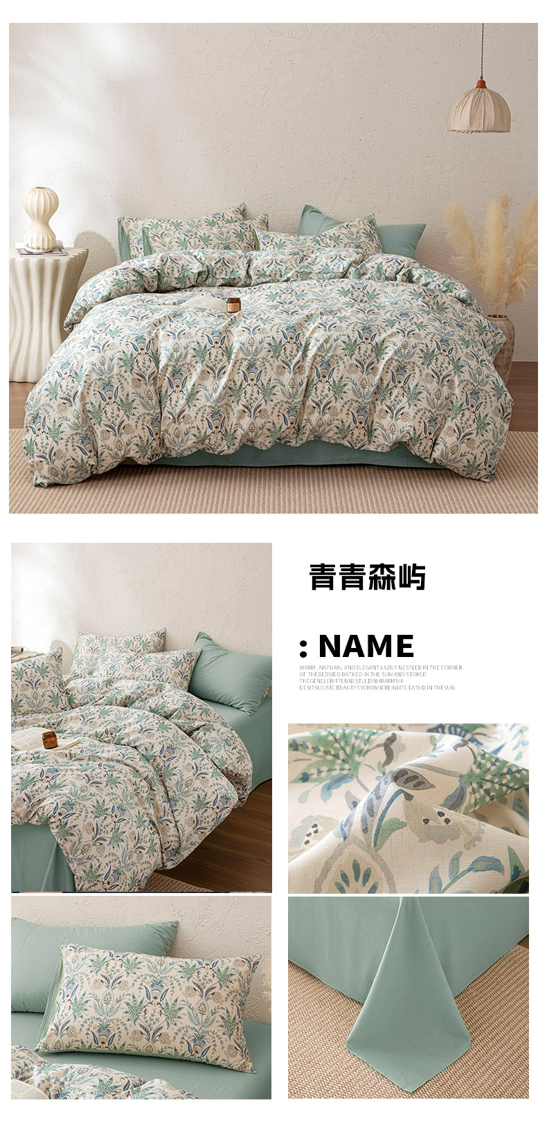 商品名称:其奥 2026新款全棉棉麻四件套 青青森屿