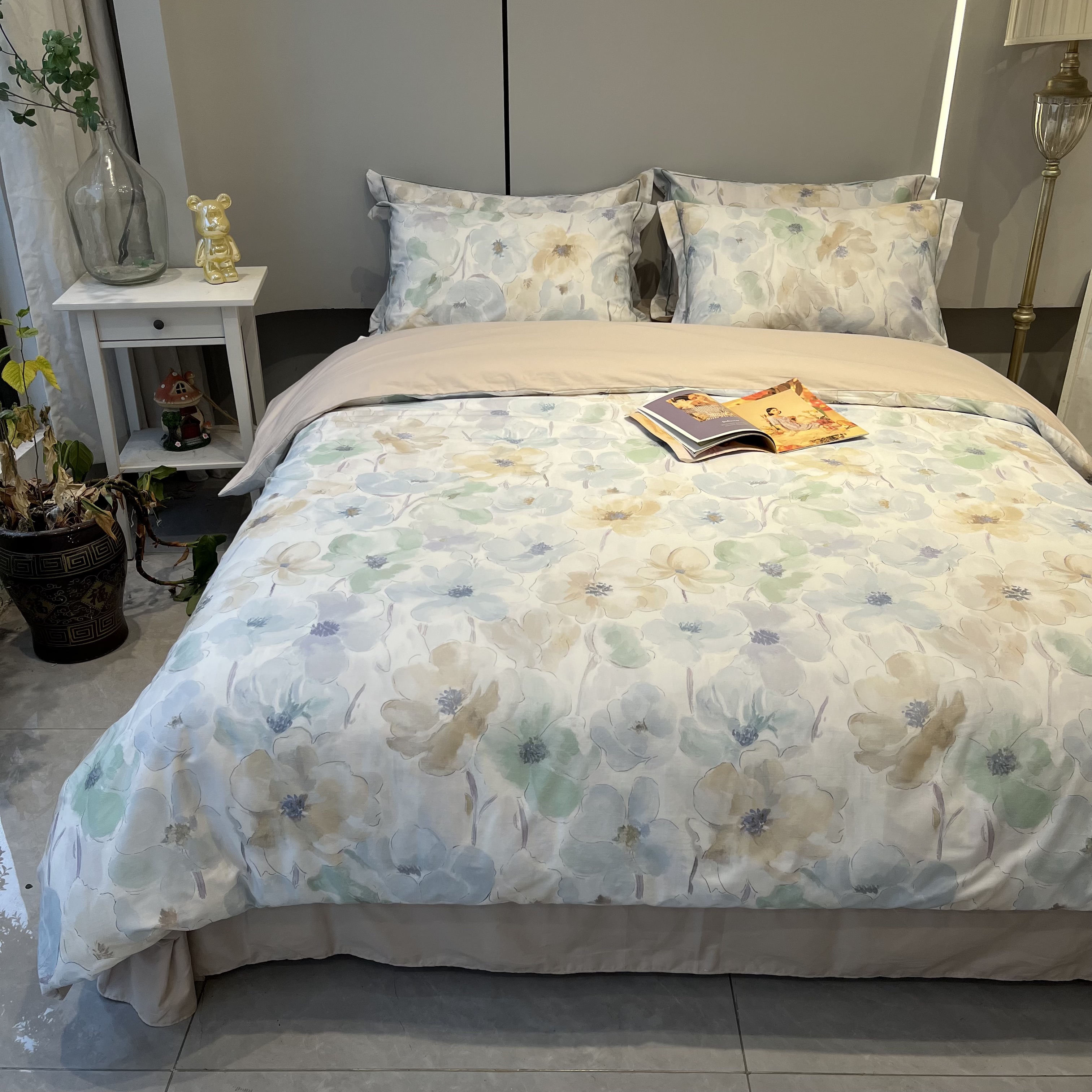 薏思家纺 2026春夏新款全棉纯棉铂金棉数码印花四件套 满庭香