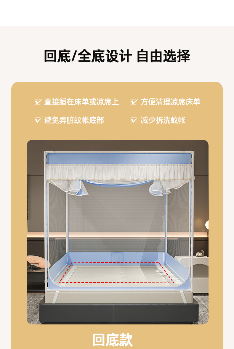 当前位置: 91家纺网 > 商品网购 > 床上用品 > 蚊帐 > 坐床式蚊帐 > 千逸虹 2026新款外穿U型三开门坐床蚊帐 蓝