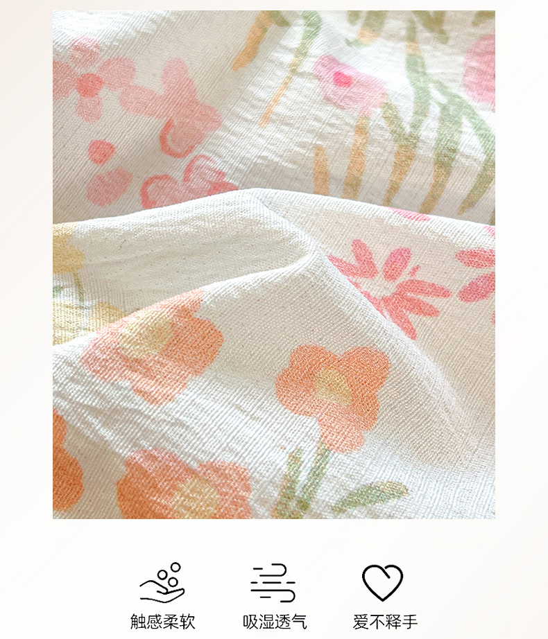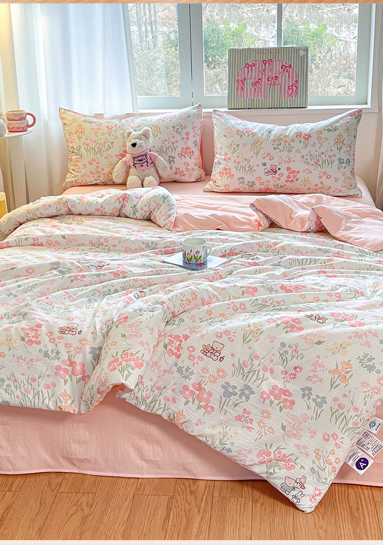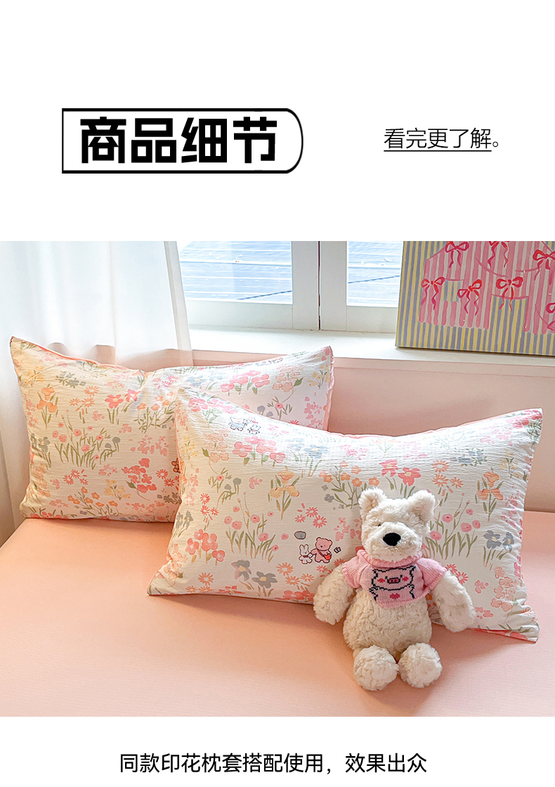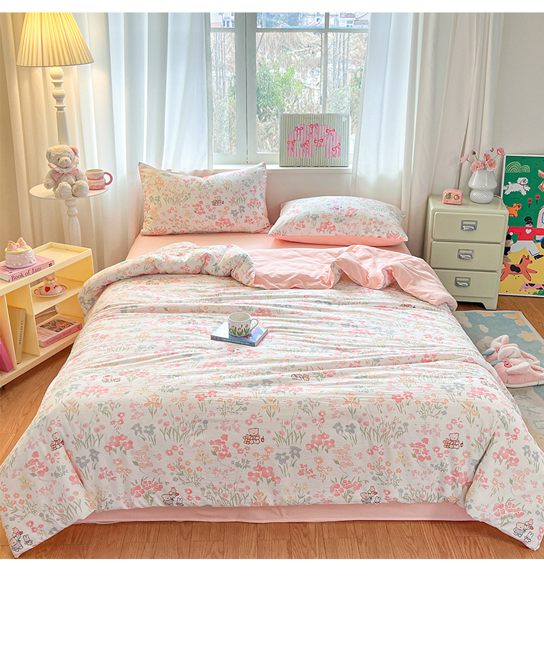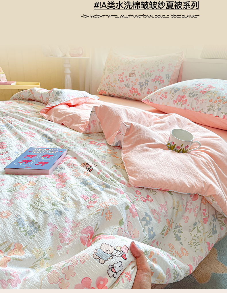• 91家纺网 家纺一手货源 找家纺 盛秋家纺 2026新款皱皱纱印花夏被-萝拉 花丛小熊+奶油粉