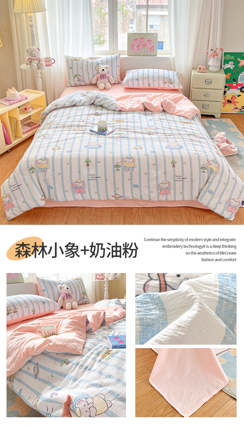 (总)盛秋家纺 2026新款皱皱纱印花夏被-萝拉,生日派对+清新绿,格子花园+奶油粉,格子铺粉+天空蓝,花丛小熊+奶油粉,可可颂蓝+天空蓝,恐龙游记+天空蓝,快乐时光+深咖,麻薯团+米驼,派对狗+深咖,森林小象+奶油粉,小狗来信+奶油粉,小伙伴+米驼,小熊小花+麦绿,修勾咖+米驼