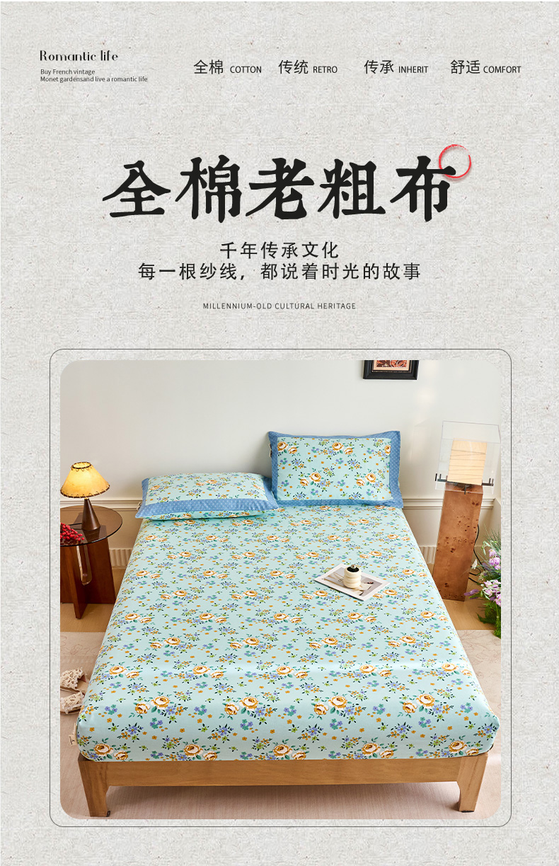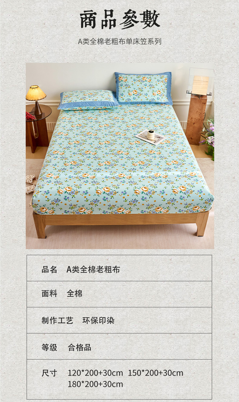 商品名称:春皖家纺 2026新款全棉老粗布工艺款单床笠床笠单件 绚烂