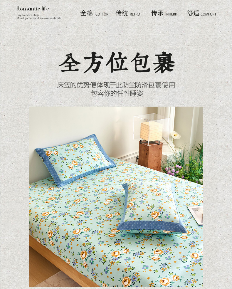 春皖家纺 2026新款全棉老粗布工艺款单床笠床笠单件 绚烂