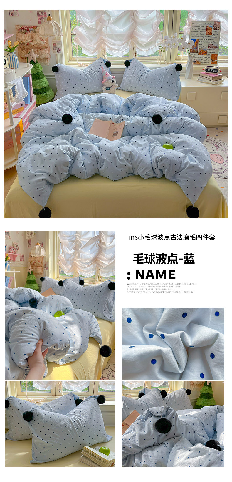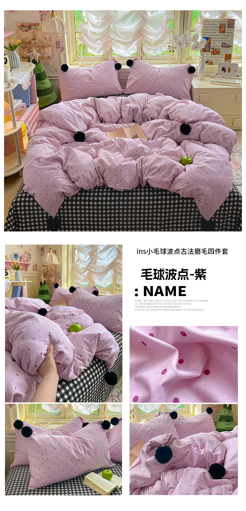 当前位置: 91家纺网 > 商品网购 > 床品套件 > 四件套 > 水洗棉四件套 > 花伞家居 2026新款ins毛球波点软软糯糯古法水洗棉加厚四件套含买家秀 毛球波点-粉