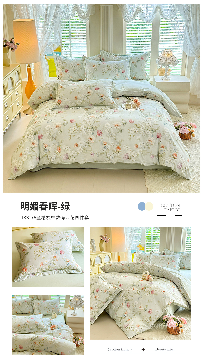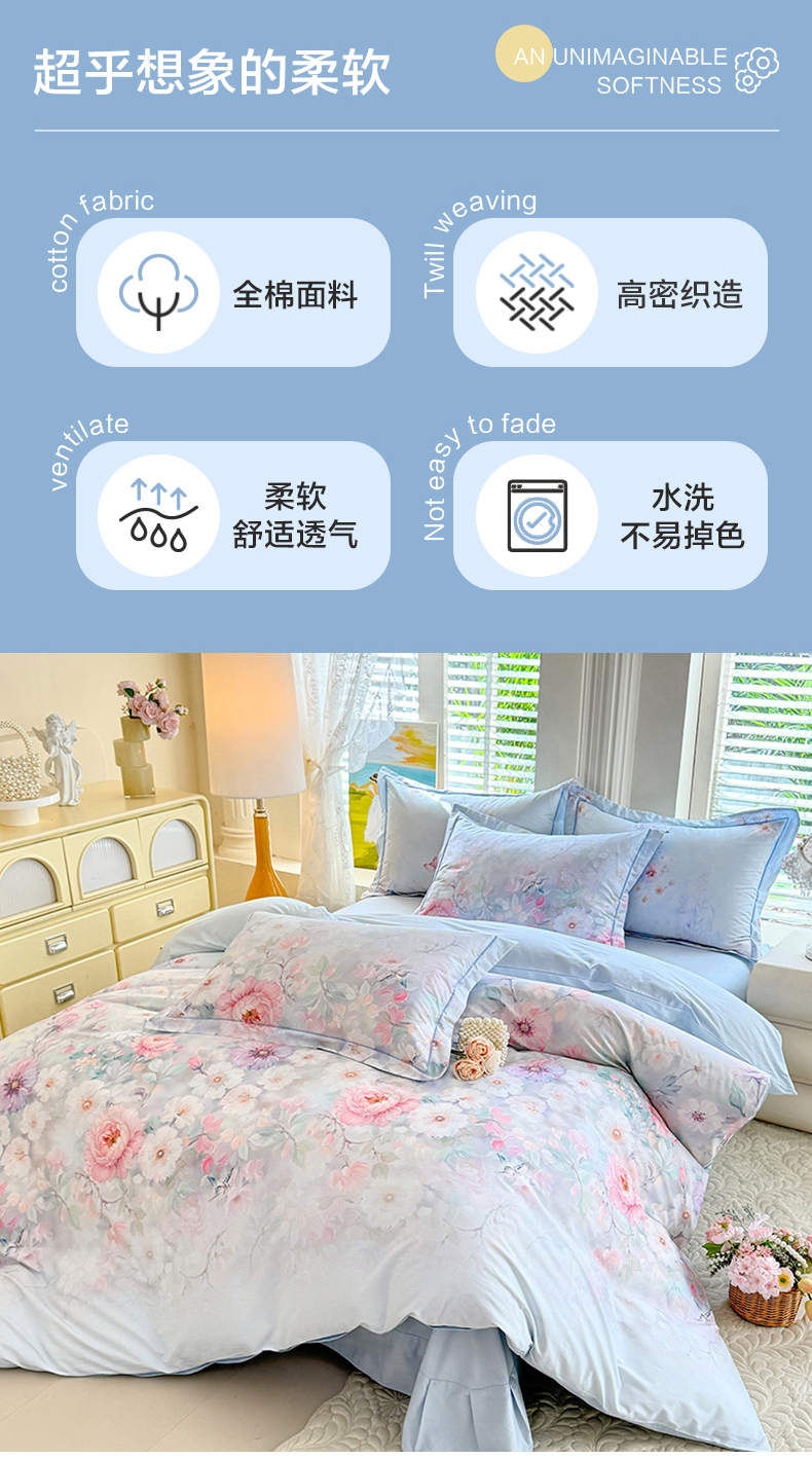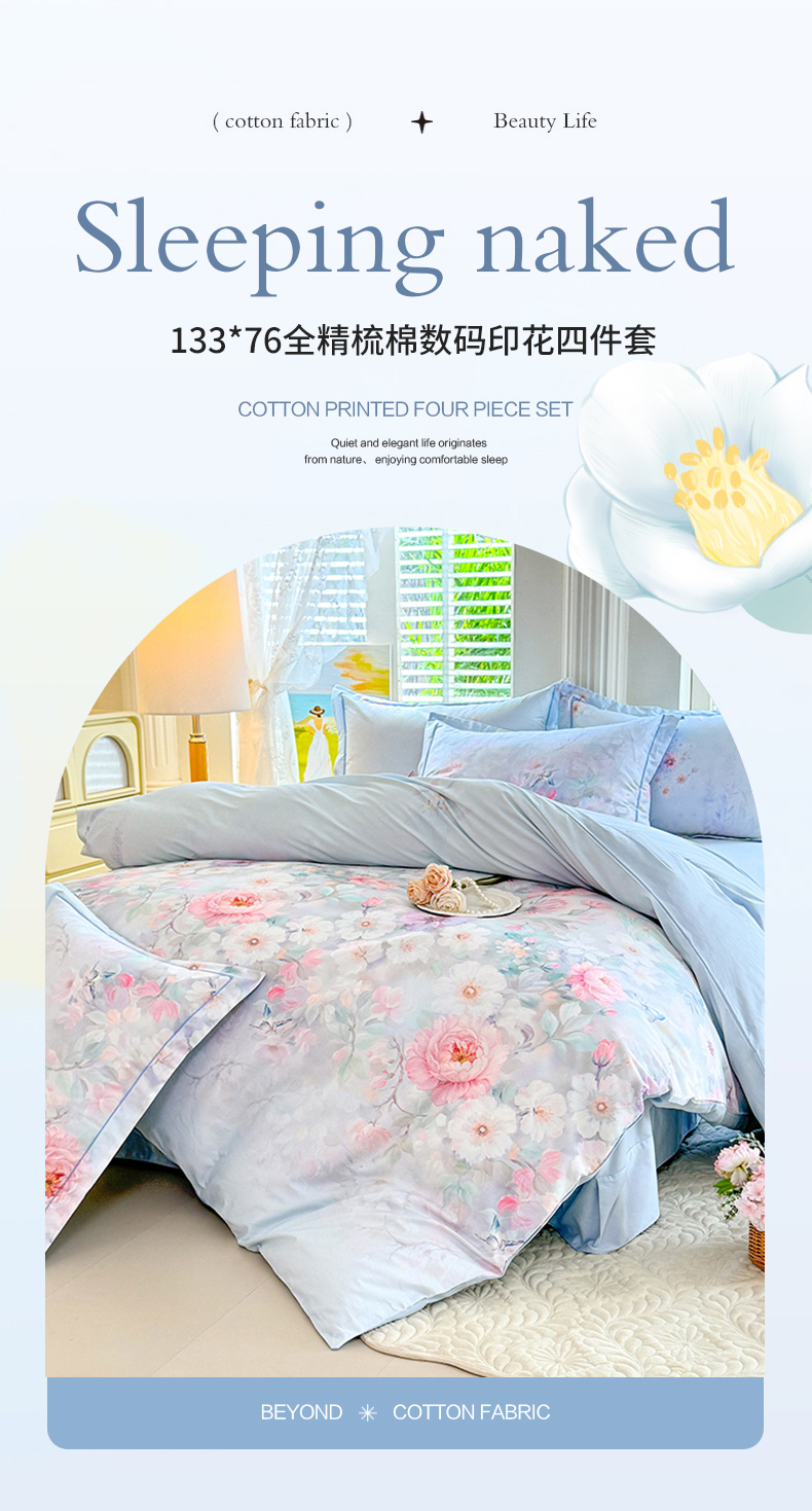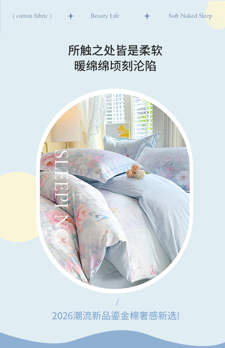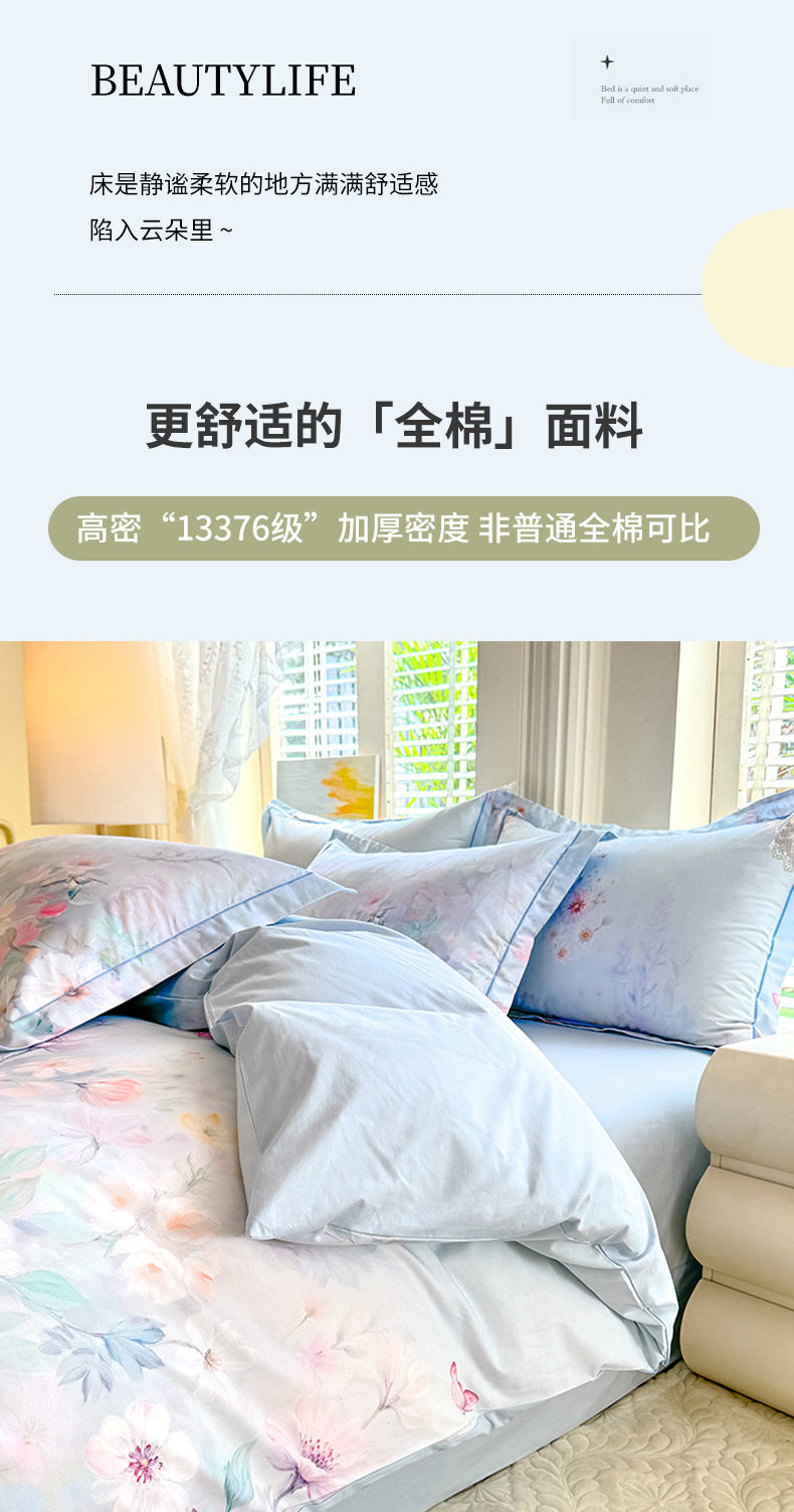 当前位置: 91家纺网 > 商品网购 > 床品套件 > 四件套 > 全棉普通四件套 > 巧玲珑 2026新款全棉纯棉13376数码印花四件套 素纱絮语-蓝