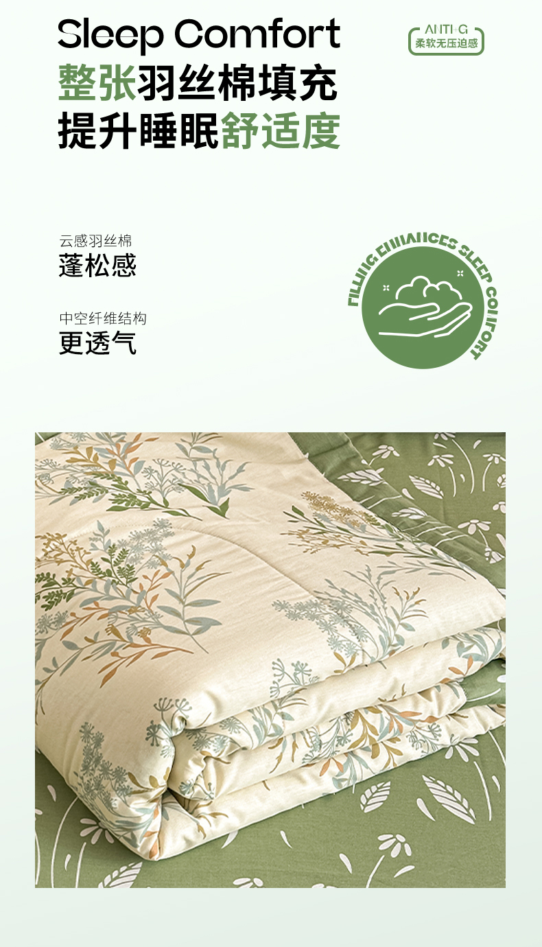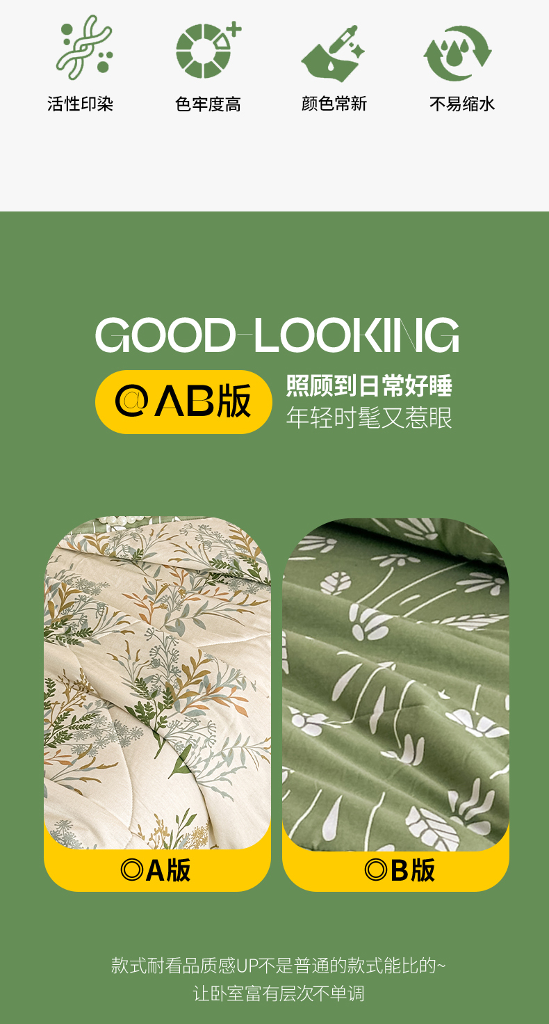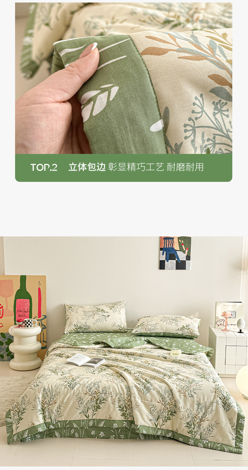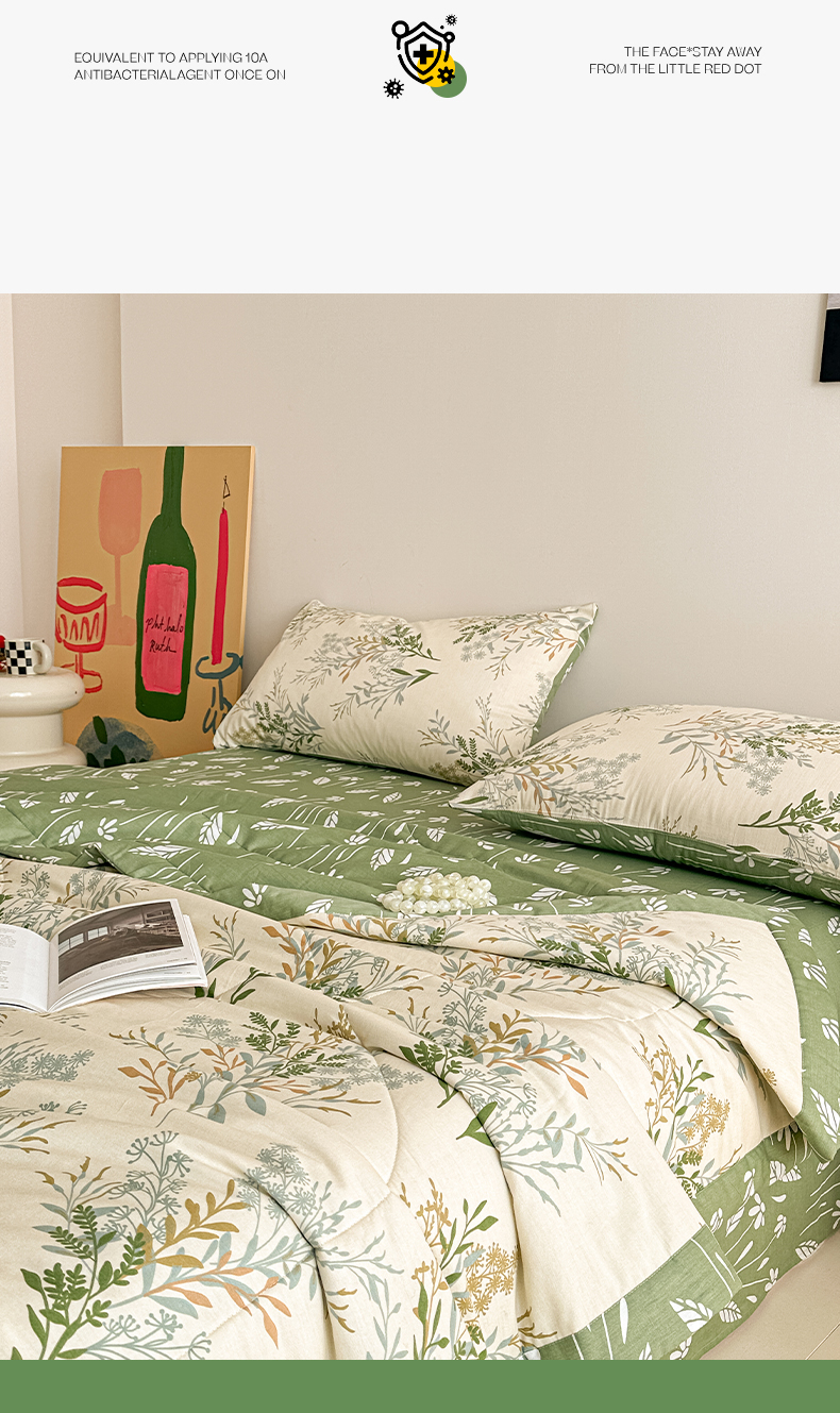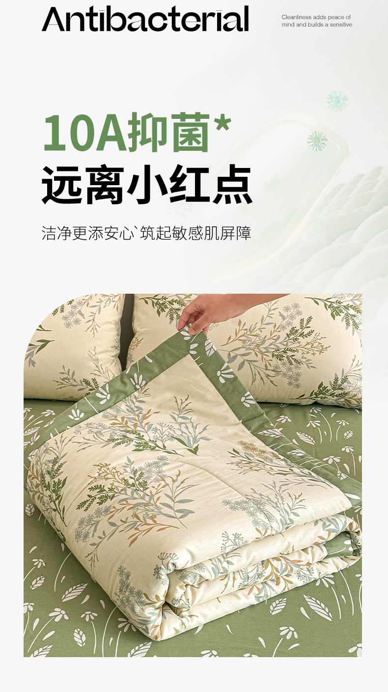 宝士康家纺 2026新款10A抗菌全棉夏被四件套(床笠款)仙草