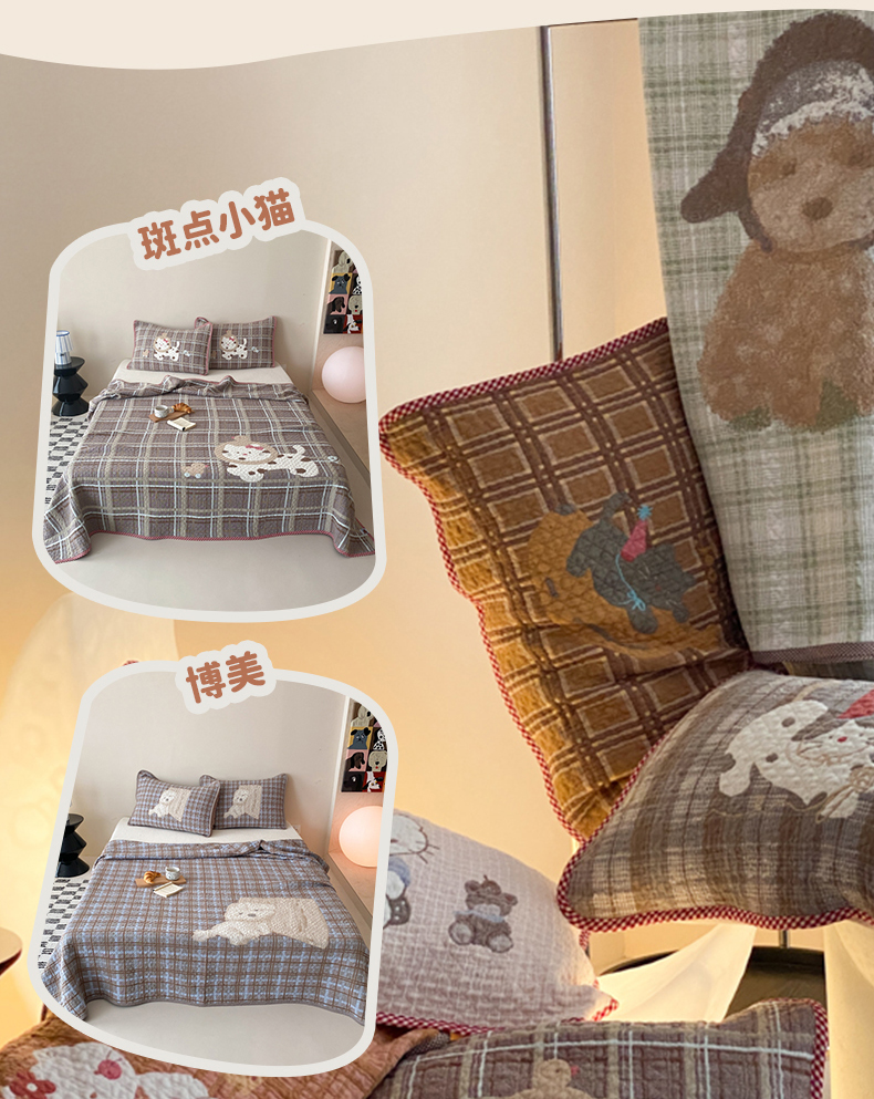 (总)麻依 2026新款韩国花边床盖三件套系列,多彩樱桃,粉皮猫,木马小熊-驼,木马小熊-紫色,皮皮小狗,丝带小熊-粉色,丝带小熊-米色,丝带小熊-水蓝,甜心小猫-粉,甜心小猫-黄,甜心小猫-水蓝,星宝,组合图