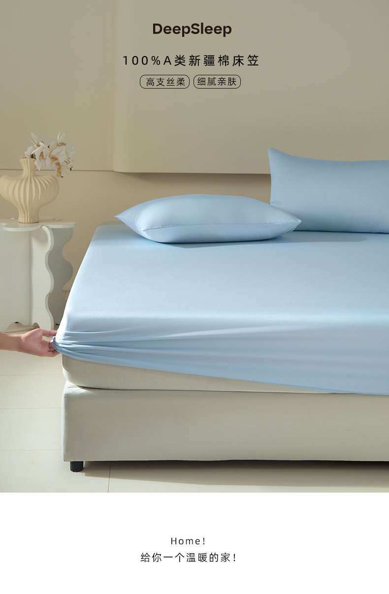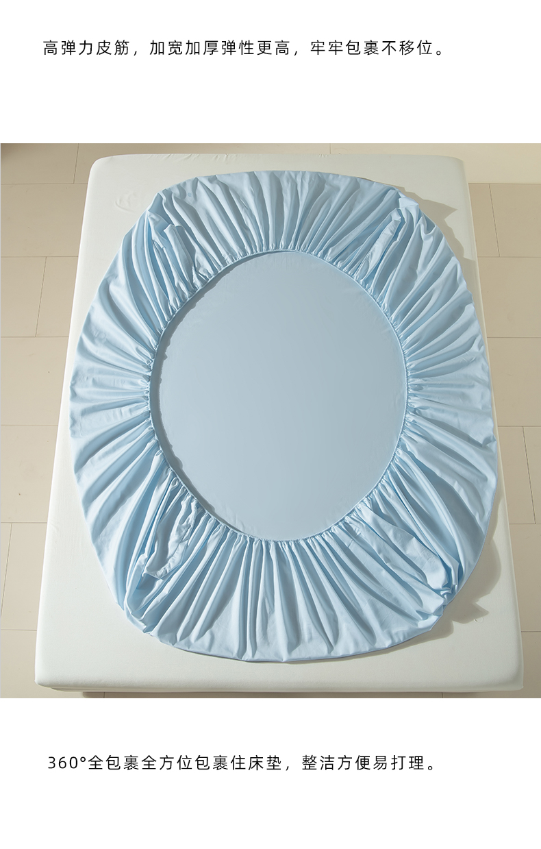 佳汐蓝家纺 2026春夏新款贡缎长绒棉纯棉单床笠 床笠单件 蒂芙尼蓝