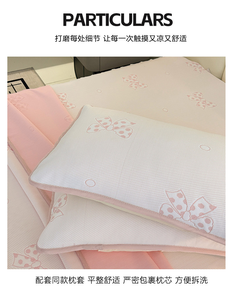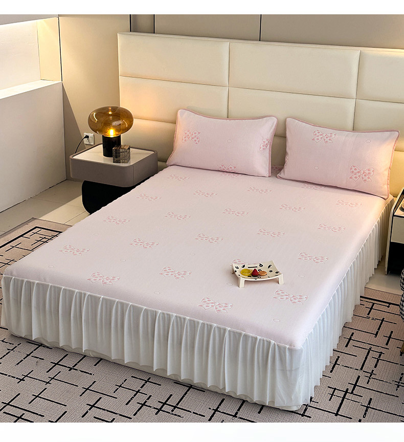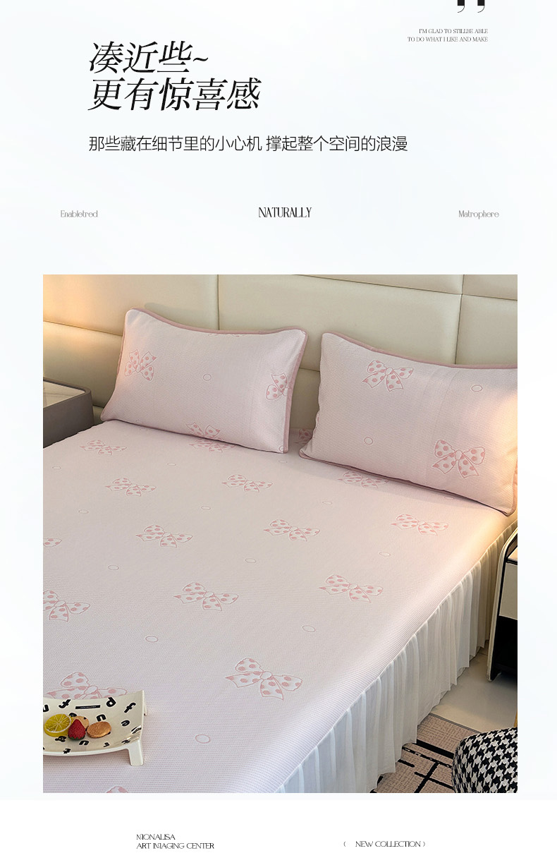七里香 2026春夏新款2026新款华夫格3D千鸟格冰豆豆凉席床裙款三件套 华夫格-粉玉,华夫格-粉玉