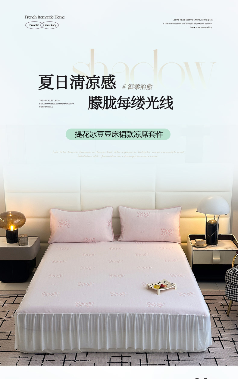 (总)七里香 2026新款提花冰豆豆床裙款凉席三件套四件套