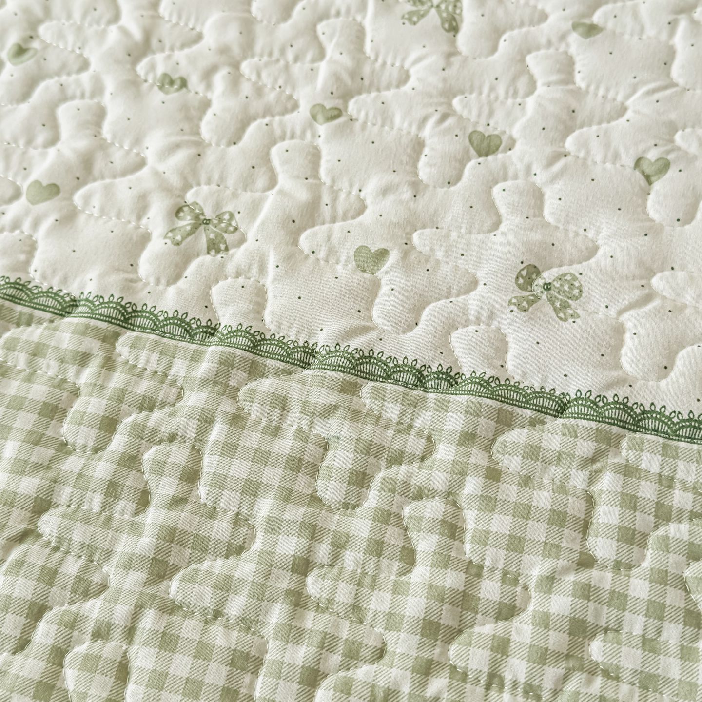 • 91家纺网 家纺一手货源 找家纺 雅眠居 2026新款直播爆款古法仿棉双层蕾丝花边床盖四件套 彩格-绿