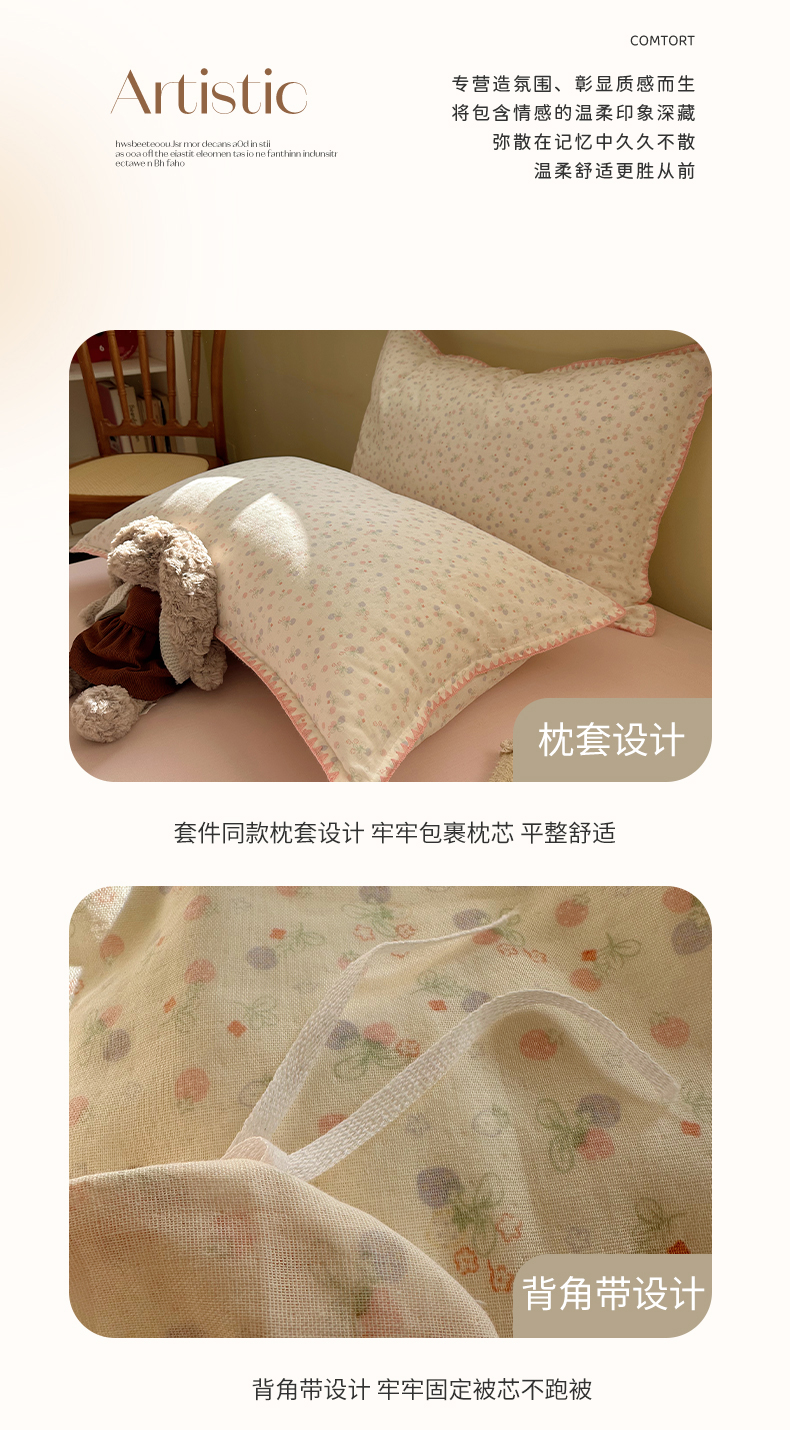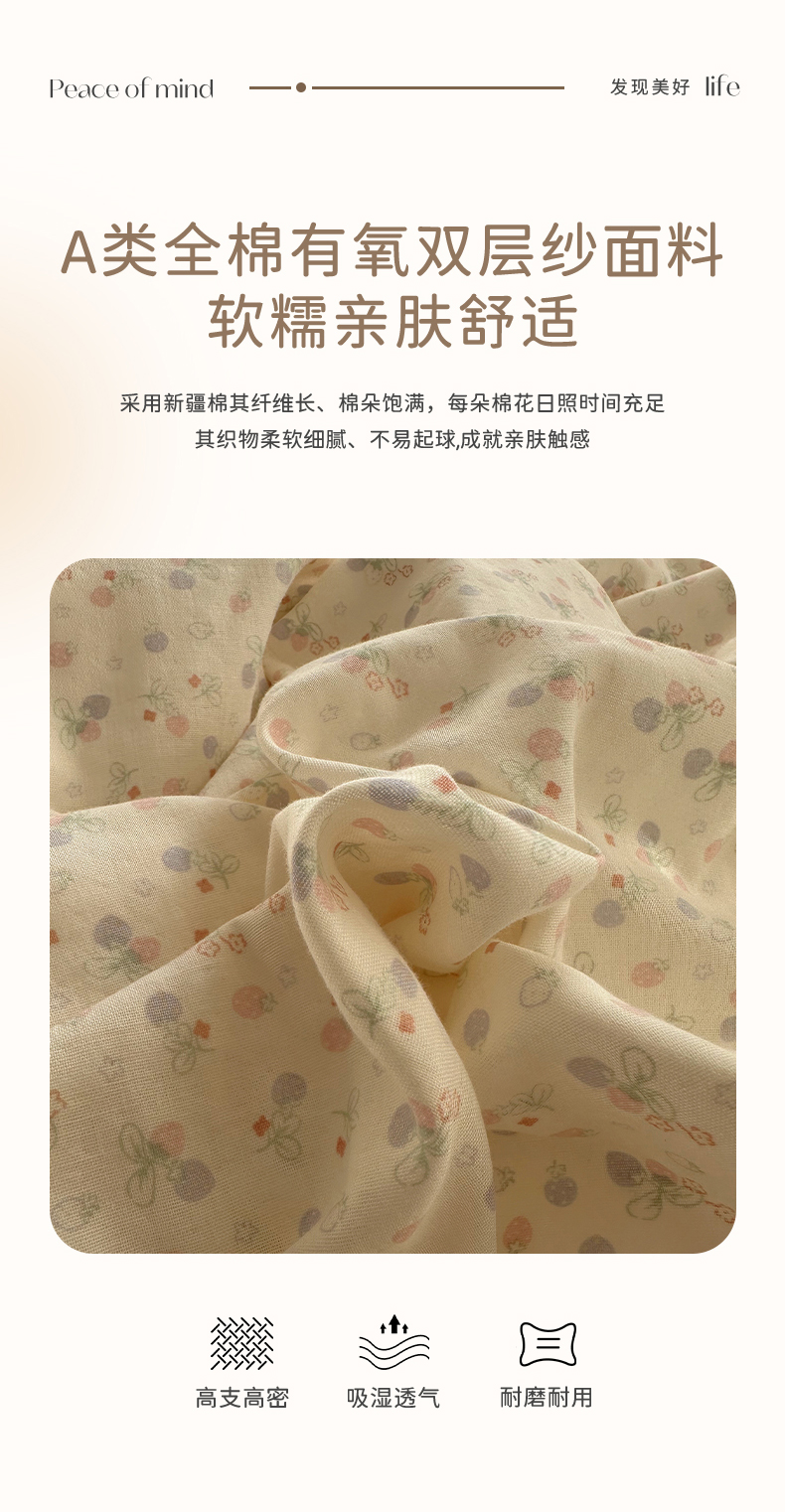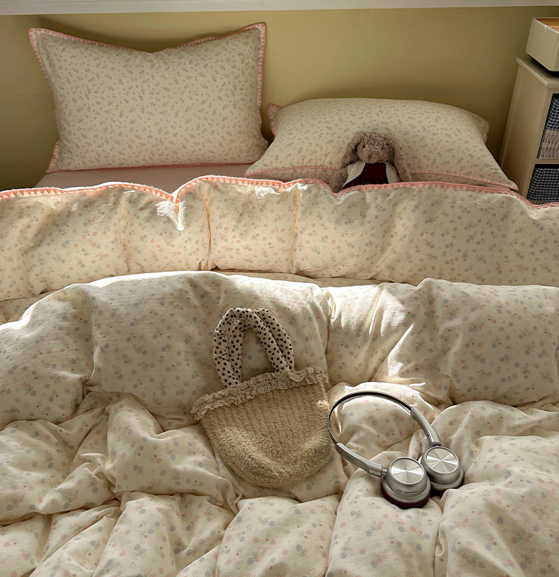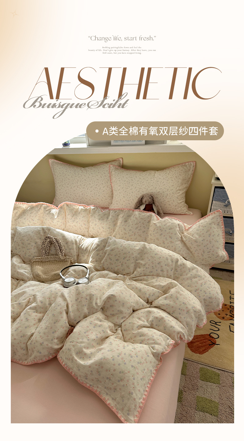 当前位置: 91家纺网 > 商品网购 > 床品套件 > 四件套 > 全棉普通四件套 > 瑞莱 2026新款A类全棉纯棉有氧双层纱四件套 淡彩花笺