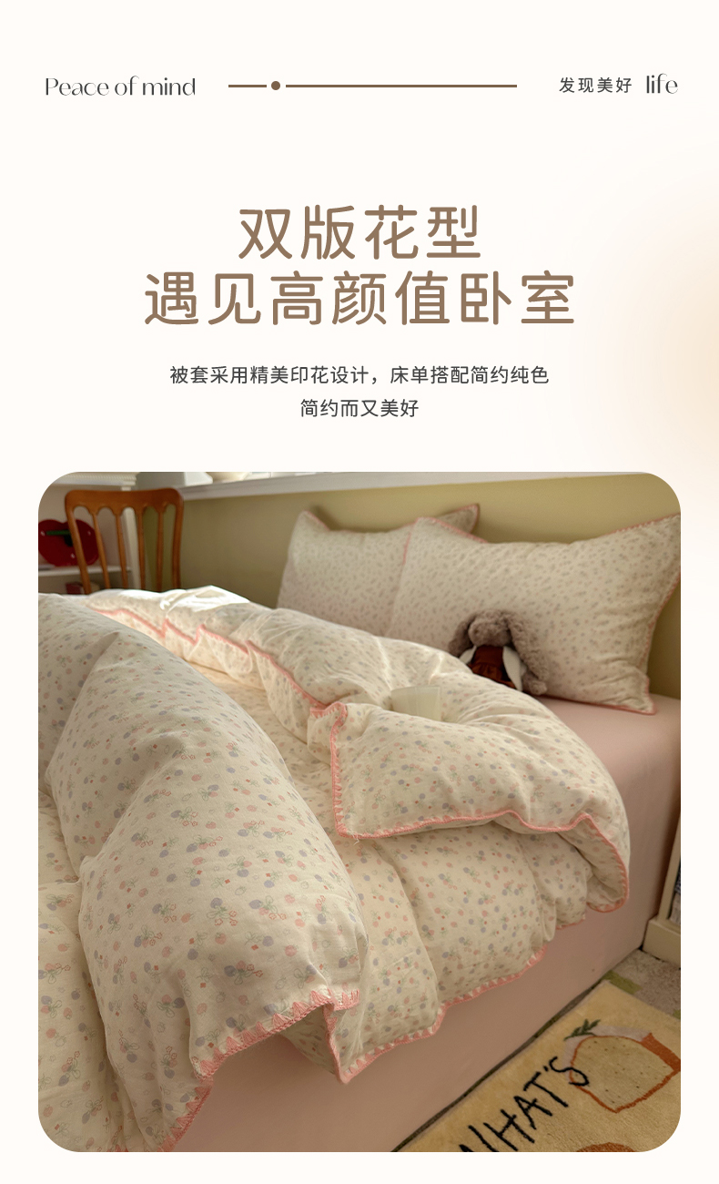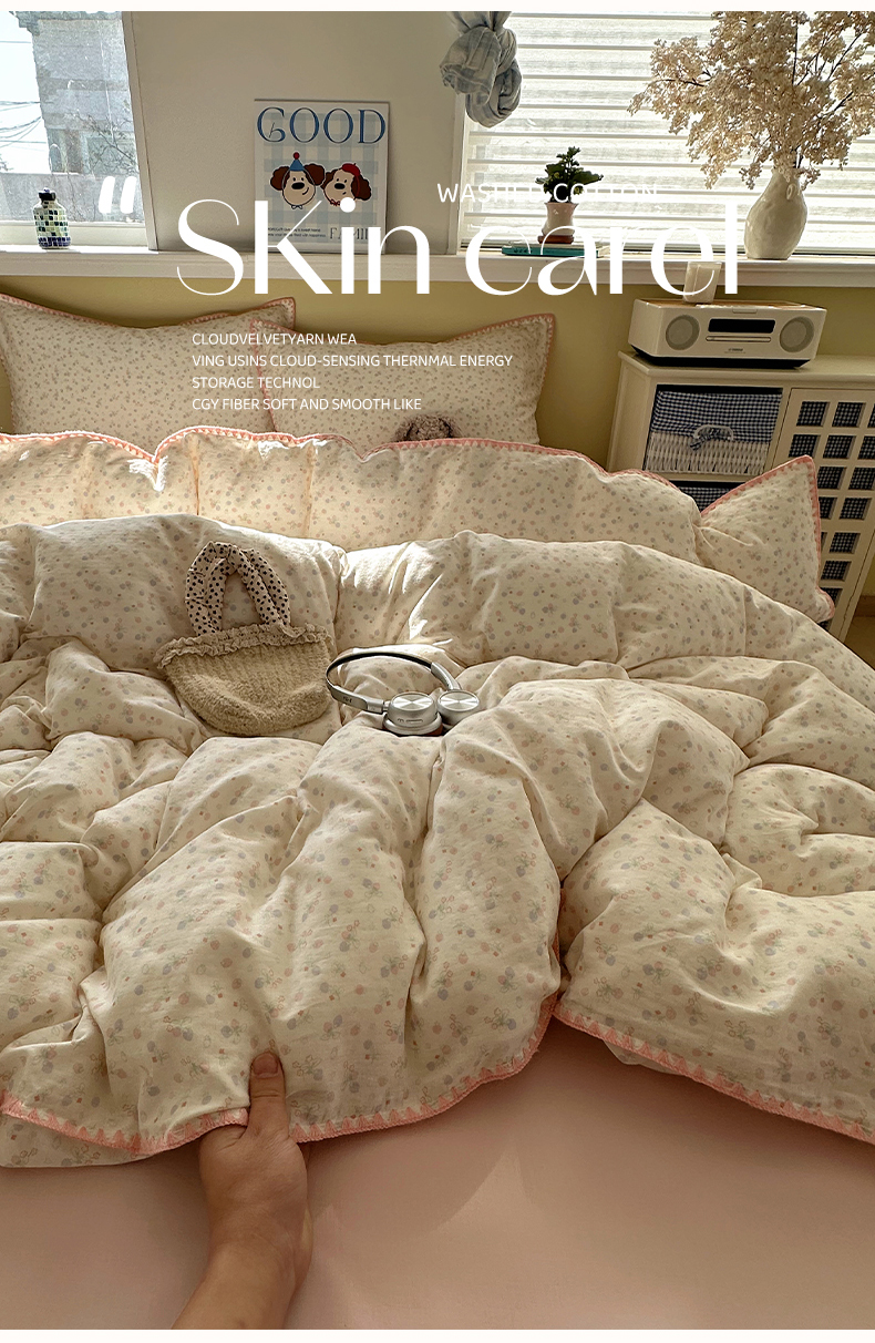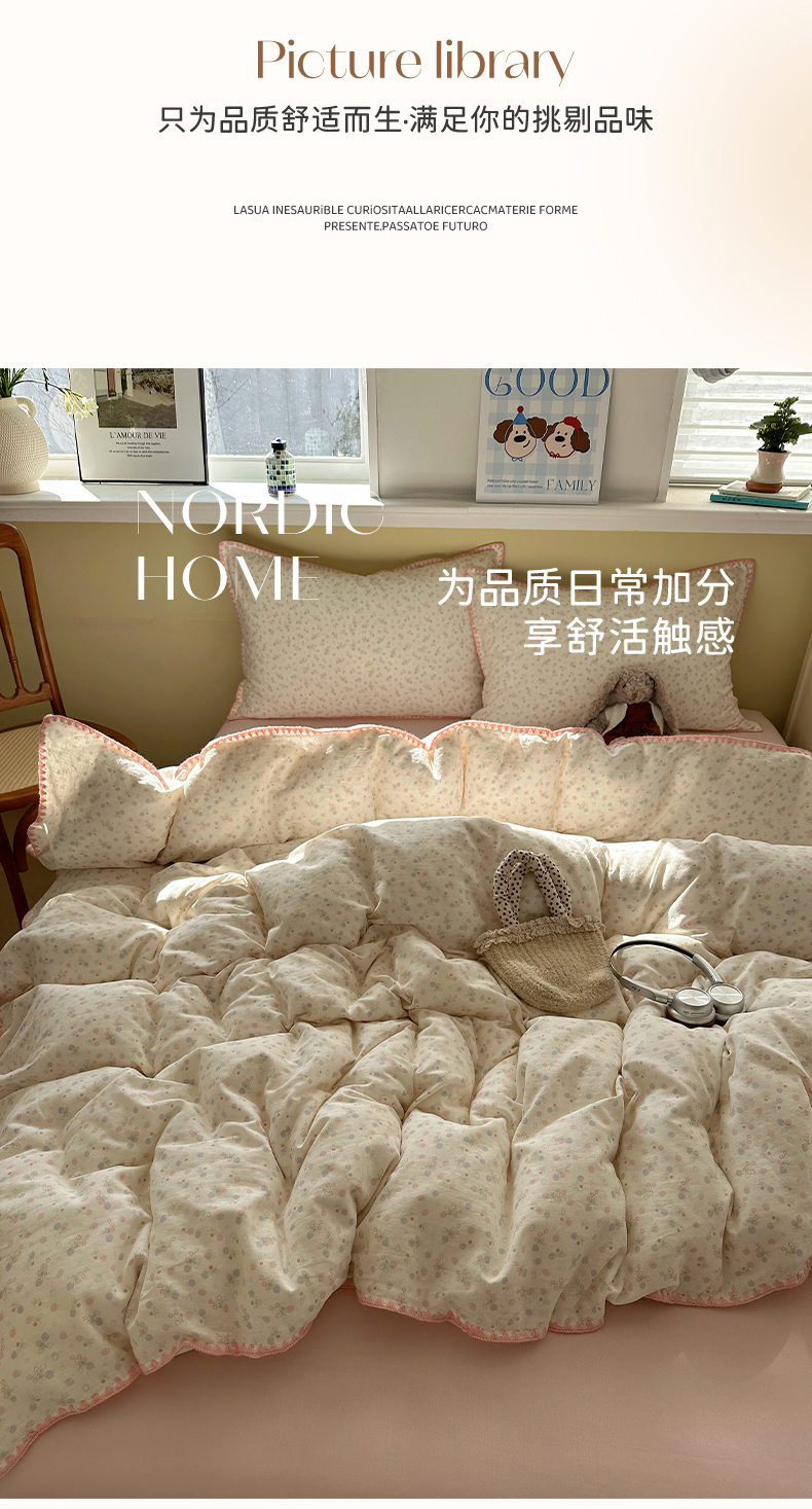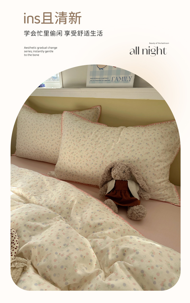 当前位置: 91家纺网 > 商品网购 > 床品套件 > 四件套 > 全棉普通四件套 > 瑞莱 2026新款A类全棉纯棉有氧双层纱四件套 淡彩花笺