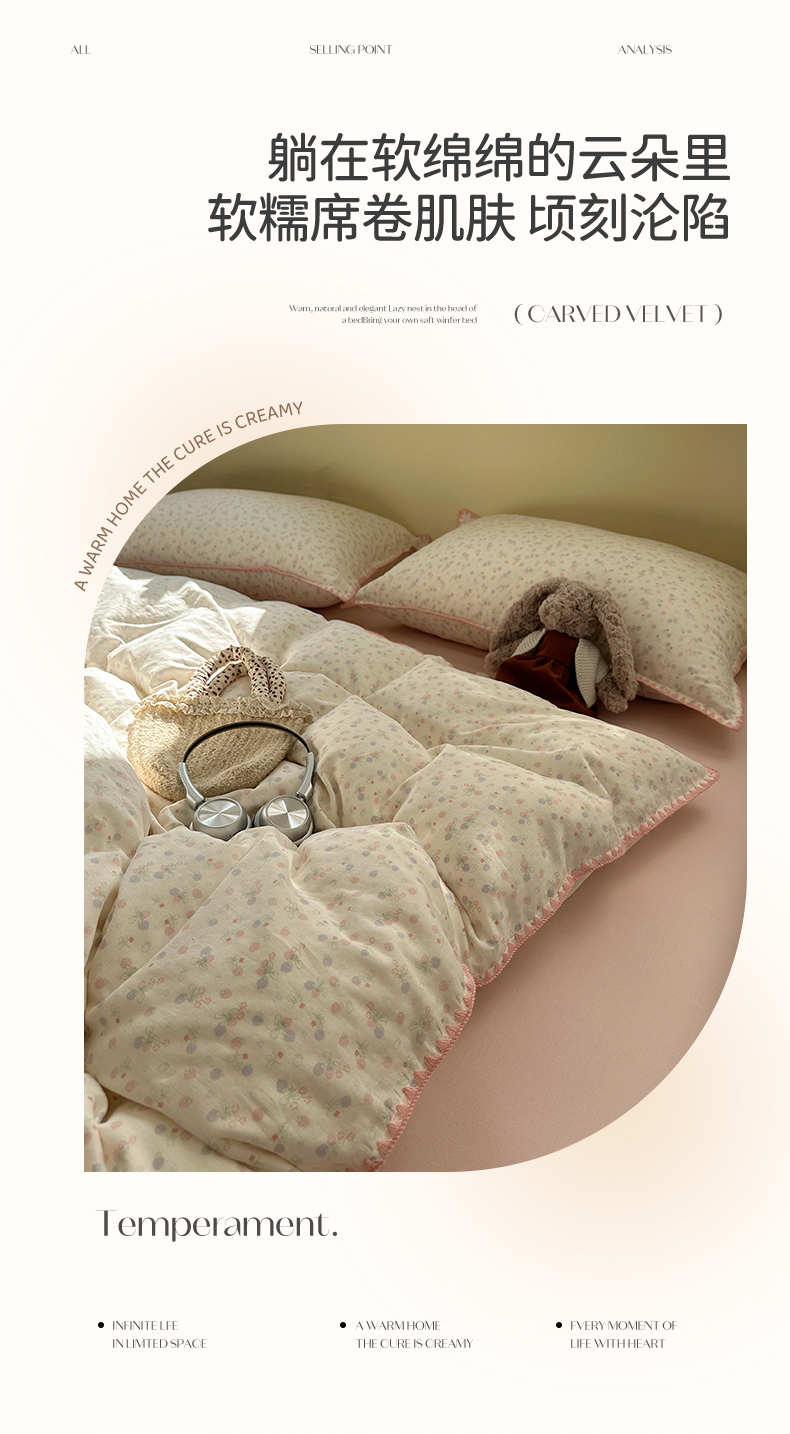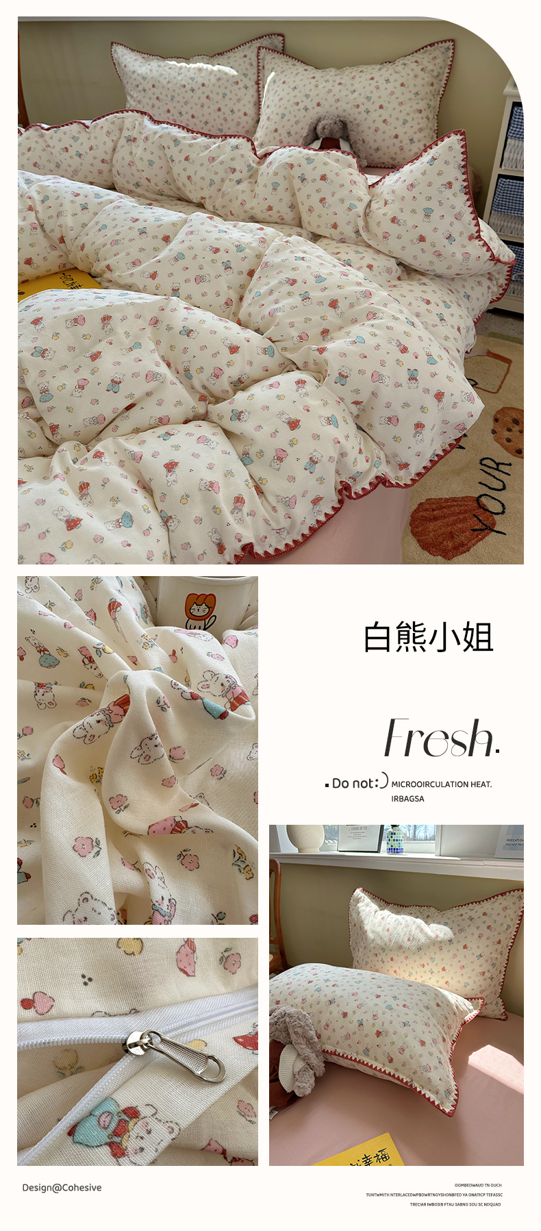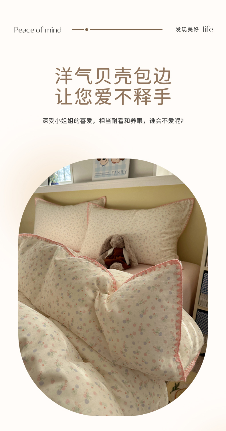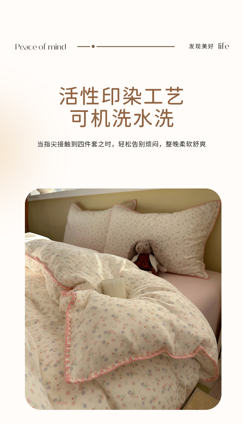 当前位置: 91家纺网 > 商品网购 > 床品套件 > 四件套 > 全棉普通四件套 > 瑞莱 2026新款A类全棉纯棉有氧双层纱四件套 淡彩花笺
