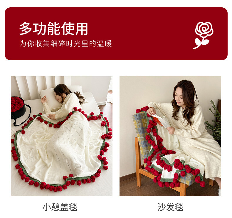 (总)丹本家纺 2025春夏新款A类爆款玫瑰花束毯多功能玫瑰花毯车载办公室盖毯毛毯毯子,玫瑰花束毯