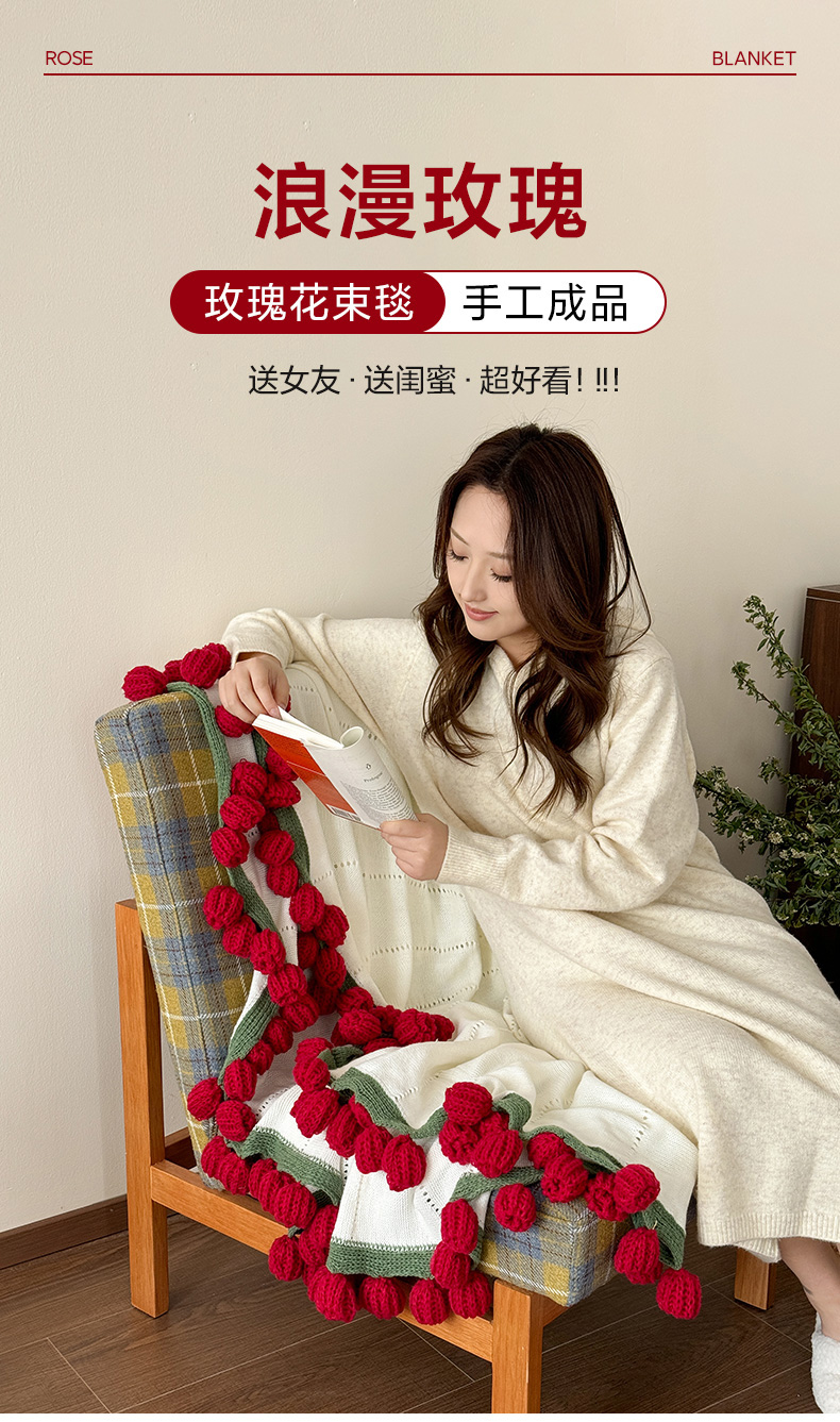 商品名称:丹本家纺 2026新款送礼神器网红直播热款玫瑰花束毯多功能毛毯盖毯 永绽花束-炽热纯红