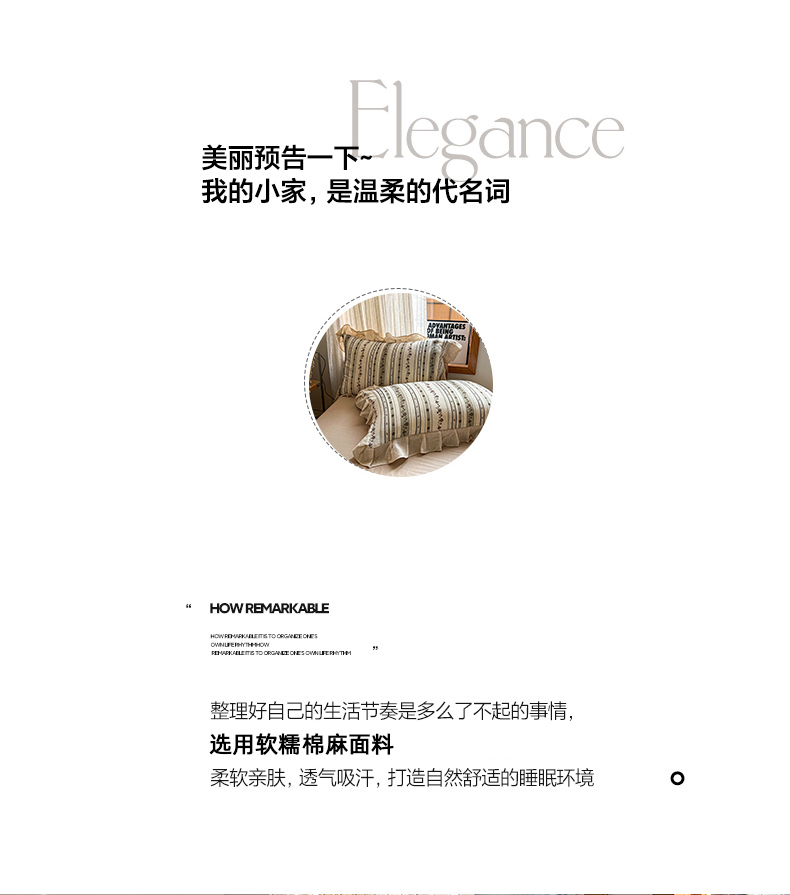 商品名称:耀悦家纺 2026新款真棉麻四件套轻奢法式大花边工艺款圆角荷叶边吊边床单 花韵叠香